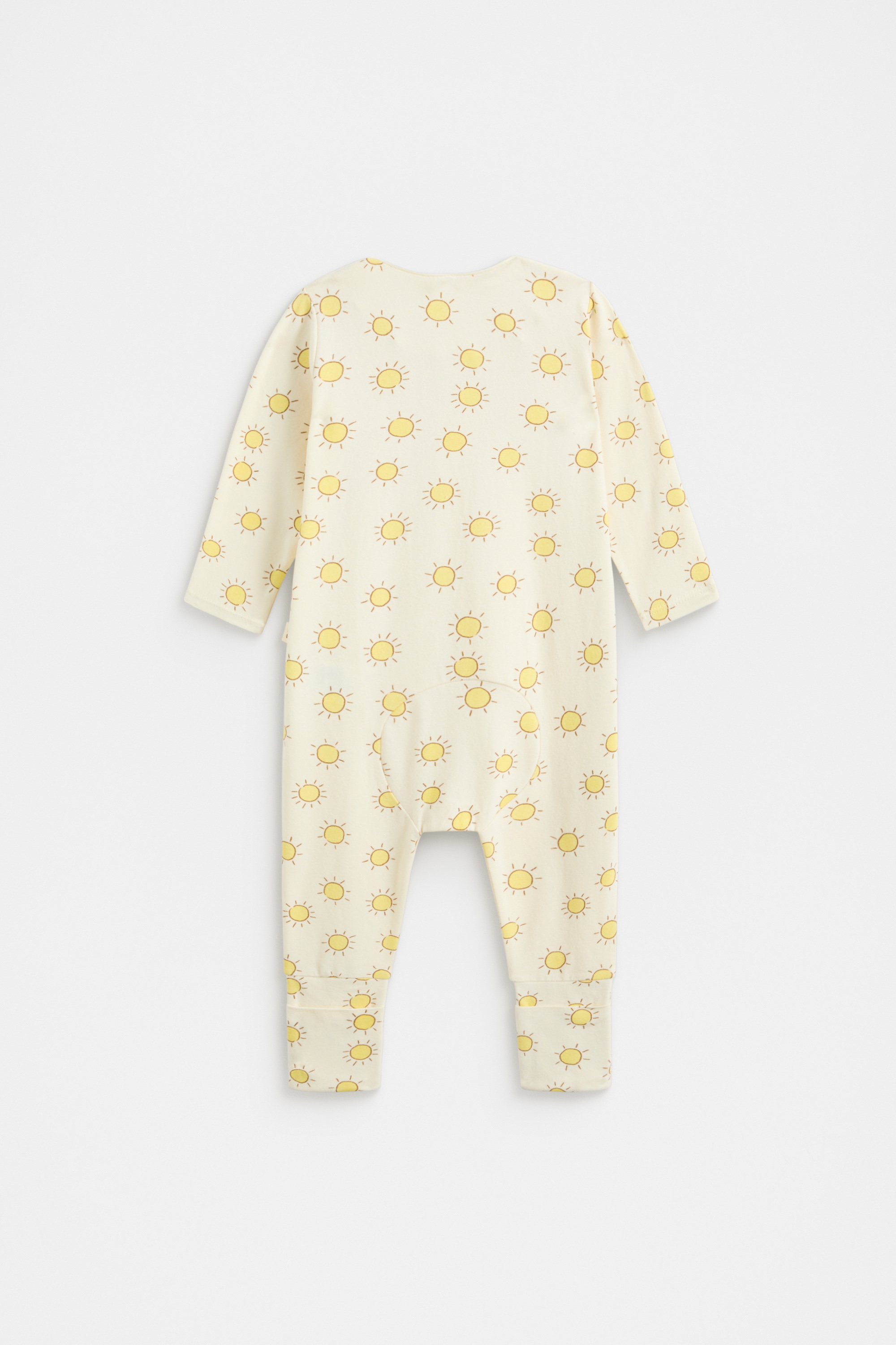 An essential for any little wardrobe with a cheerful sunny design, this zipsuit features a round neck, long sleeves, and full-length pants with convertible fee. For fuss-free changes, it fastens with a two-way zip from ankle to neck, and little feet can be popped in and out for maximum comfort. Crafted from a premium stretch cotton blend for the perfect amount of stretch and a comfortable fit.