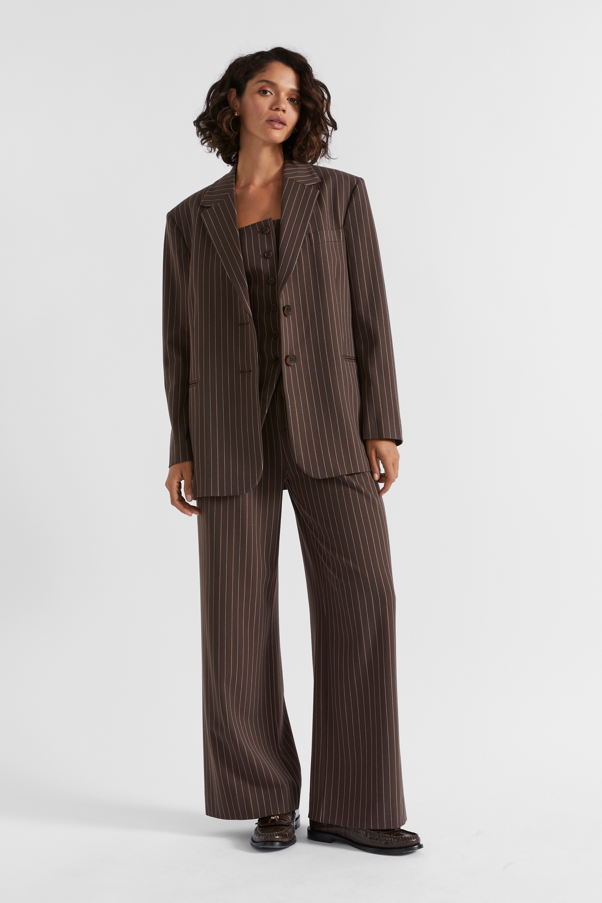 Tailored Single Breasted Blazer  Dark Espresso Pinstripe  hi-res