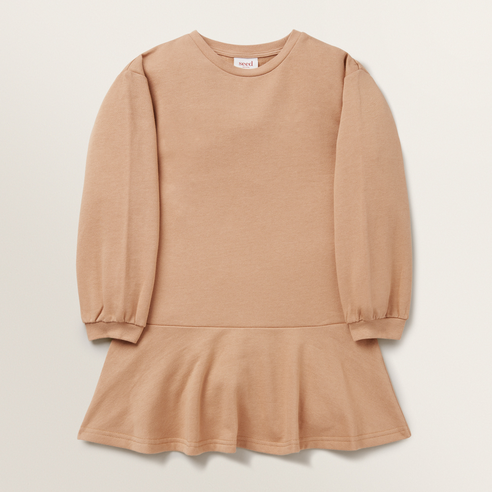 This Terry Dress is just as sweet as its Macaroon colourway. It is detailed with a crew neckline, balloon style sleeves and a low peplum hem. Pair this wardrobe staple with Seed Denim or Seed Leggings to complete the day-to-night look. Made from a 100% Cotton Chambray, it is available in sizes 2 to 10. For care information, check the label inside of the garment.