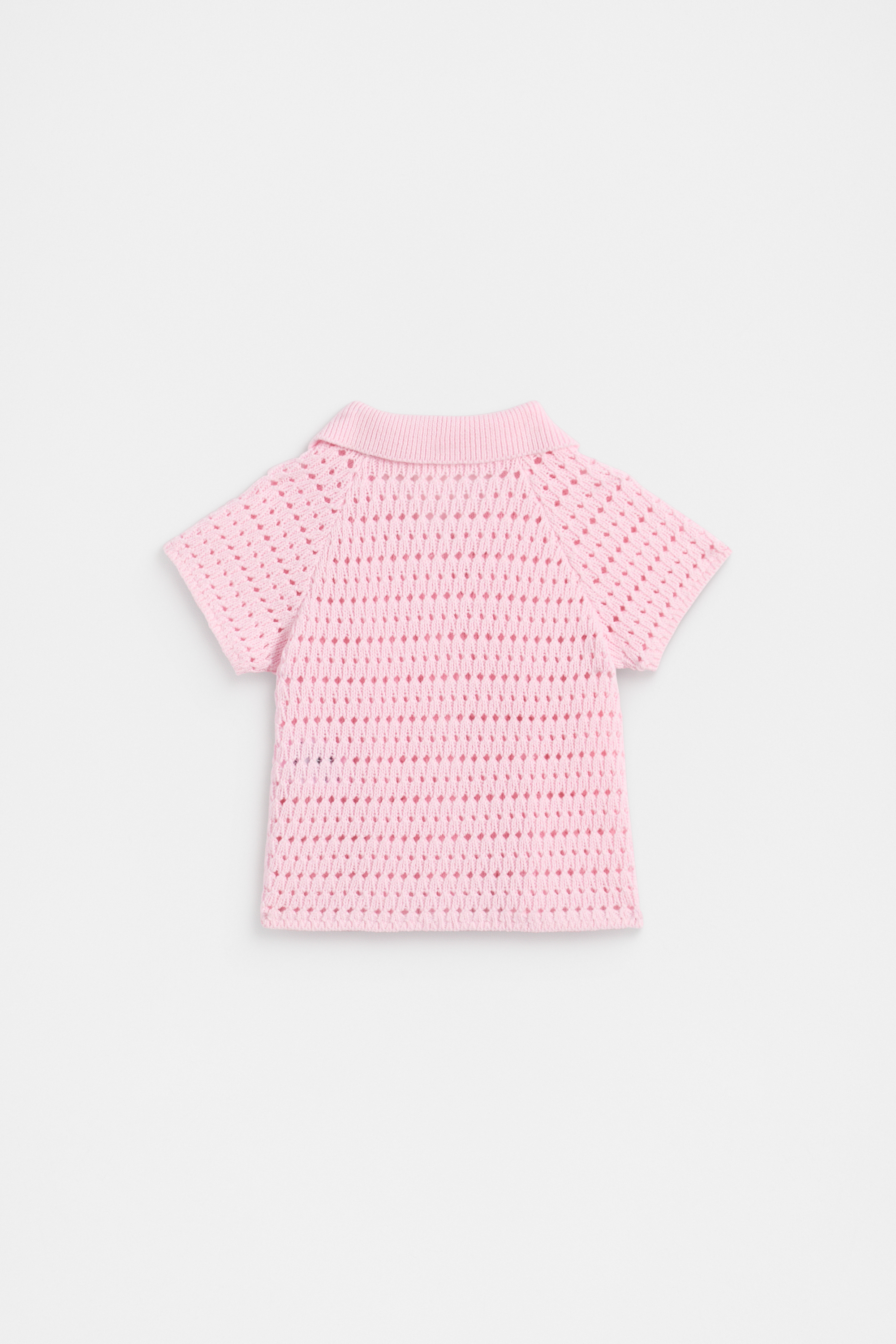 In a sweet textured knit, this shirt features a collar, a button front, short sleeves, and ribbed trims. It's crafted from cotton, and can be paired with the matching knit shorts for an adorable set.