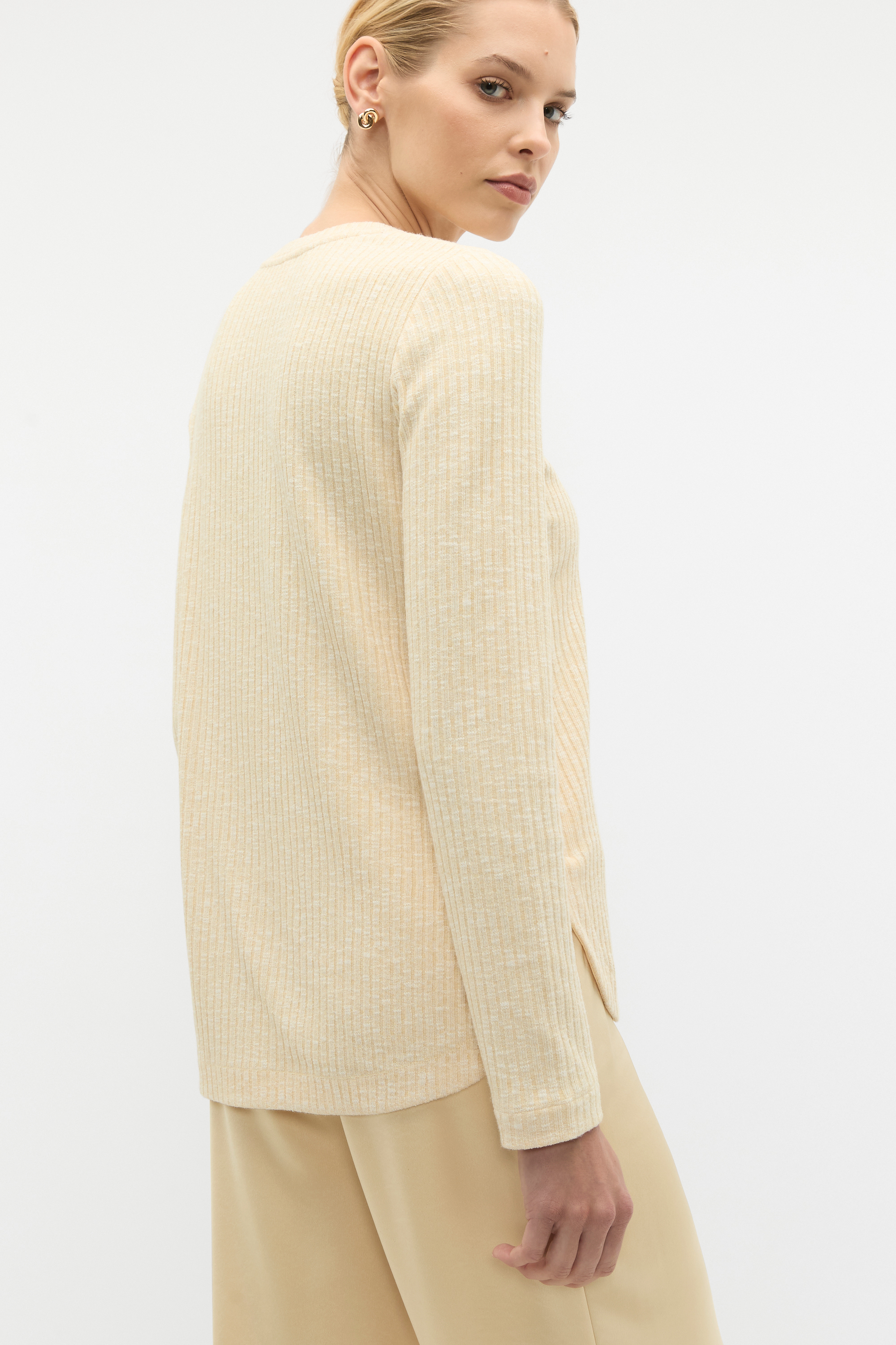 Textured and soft for everyday comfort, this long sleeve top is a wardrobe essential, perfect for layering. It features a round neck, long sleeves, a relaxed fit through the body and has a ribbed finish.