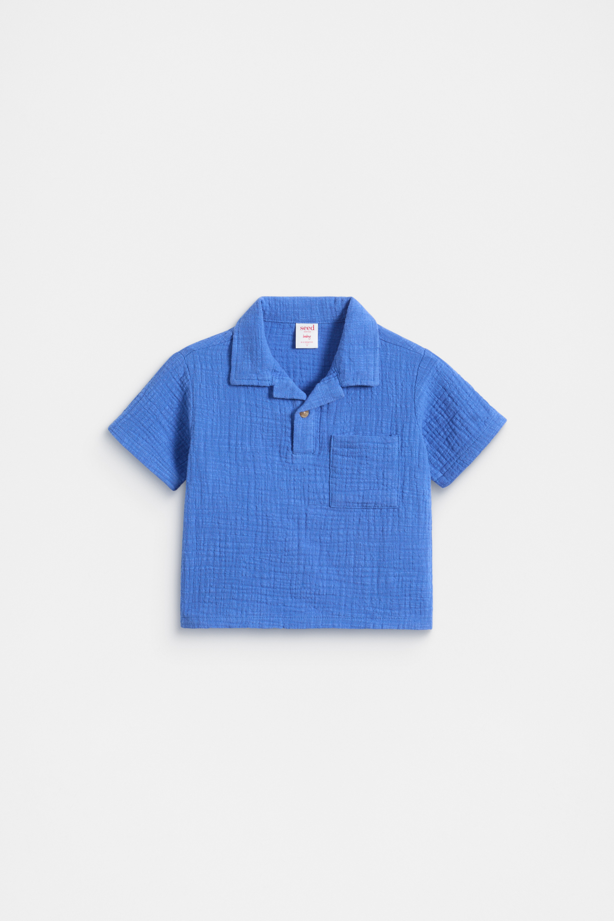 A handsome style for your little love, this shirt is a classic design. Crafted in premium cotton, it features a collar with a button placket, short sleeves and a textured finish.