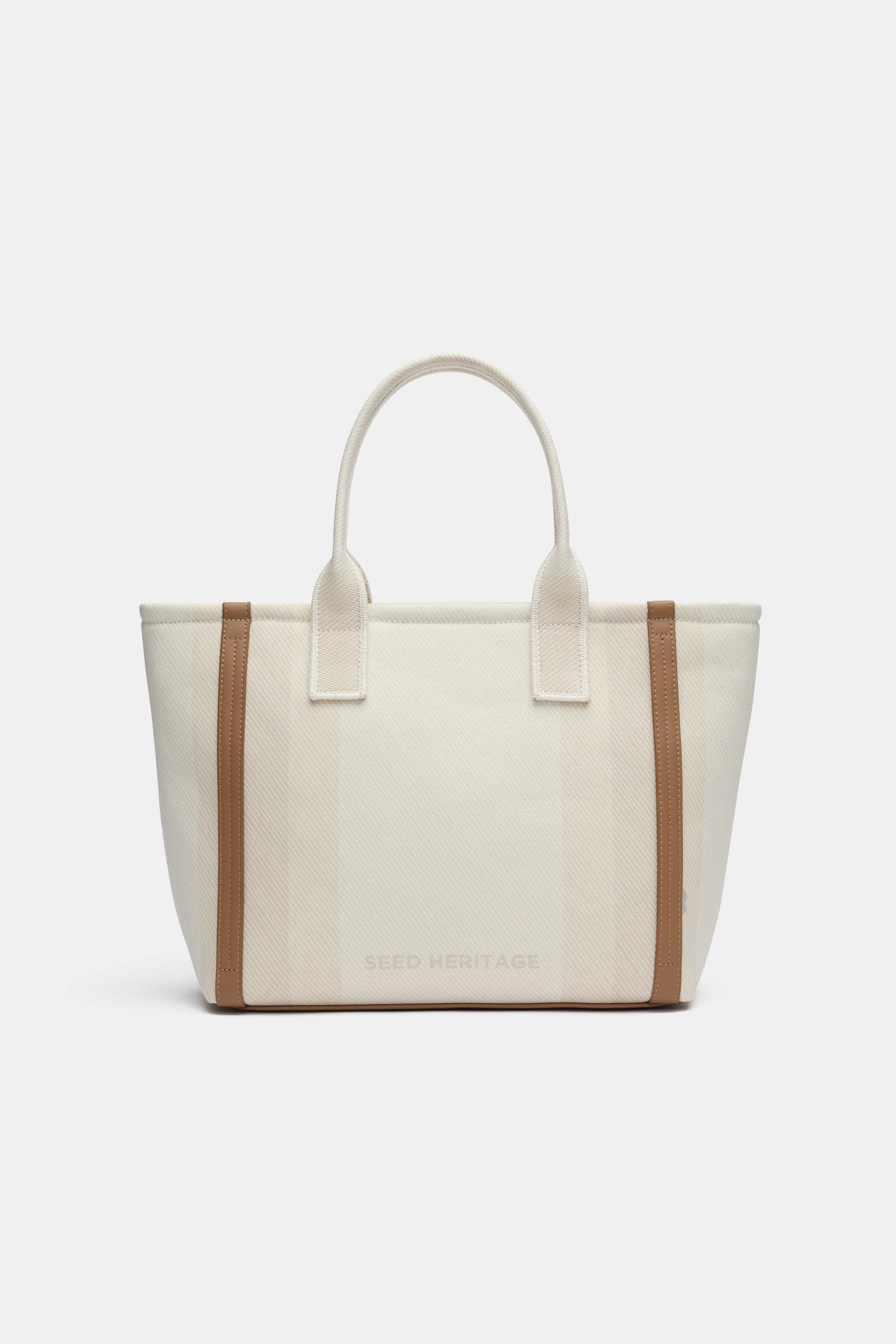 An everyday design that combines both style and ease, this tote bag boasts a two tone design finished in a textured fabric. It features a top handle detail, a PU base and trims, an overlocked edge detail and is fully lined with an internal zip pocket.