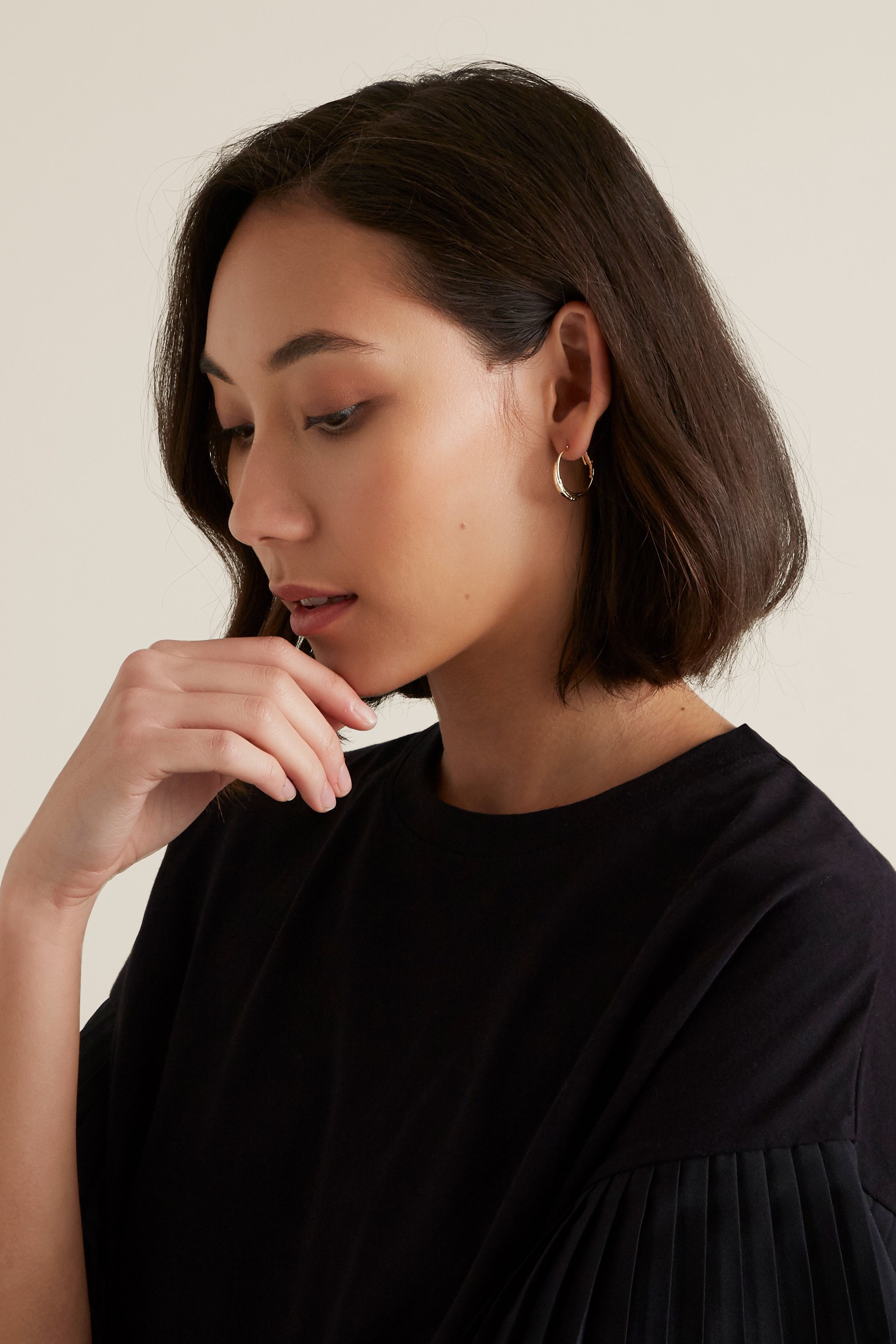 In two colourways, these Tiny Hoops are the perfect layering jewellery piece this season. Made from a base Metal, they are polished in a sleek metallic coating. Featuring a bottom-heavy half-circle loop, these Tiny Hoops are detailed with a hook and latch closure for added security while you wear them.