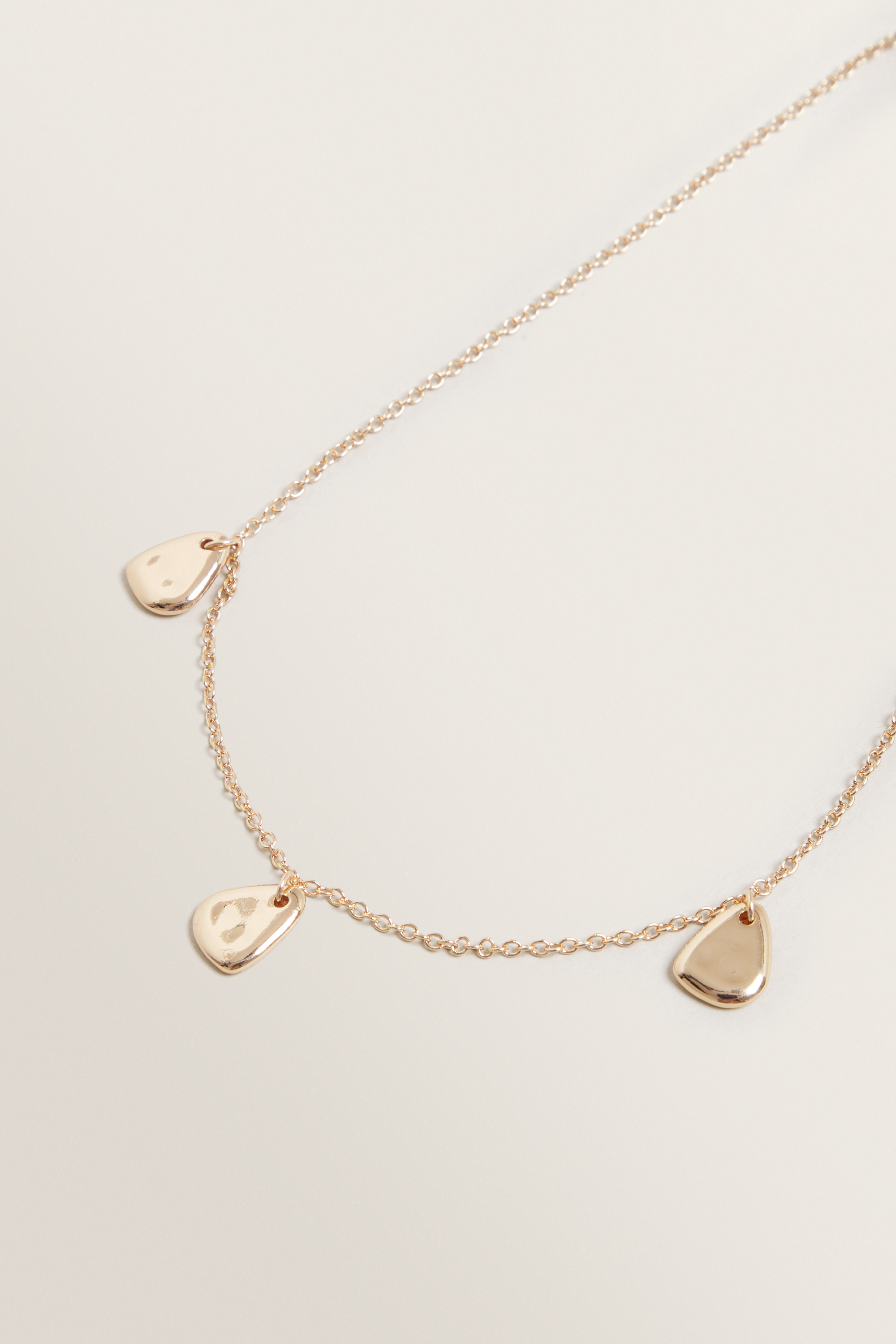Detailed with hammered metal pendants, this Trio Drop Necklace features an adjustable chain and latch closure.