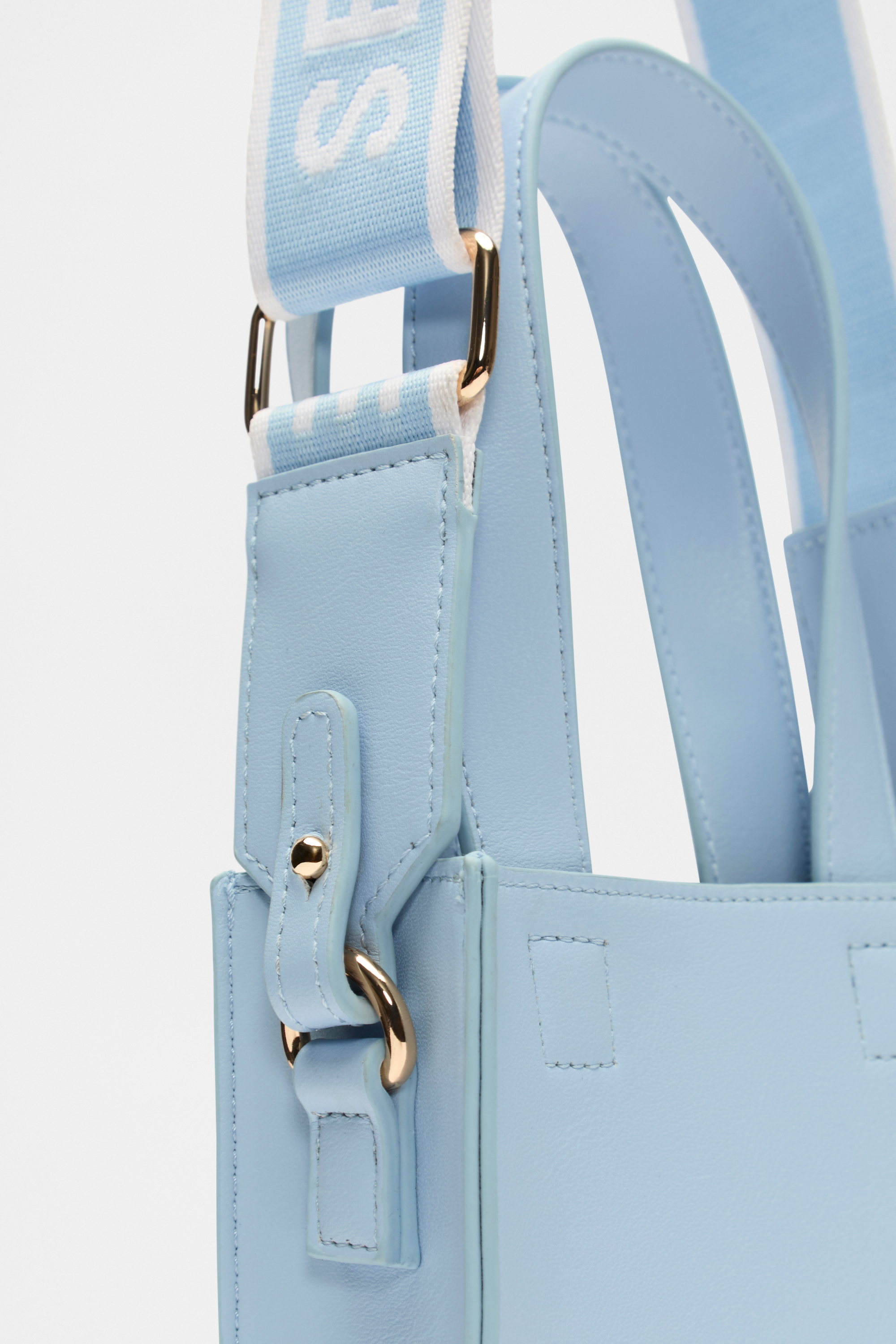 Small in size in a chic structured shape, this bag features an adjustable crossbody strap with Seed Heritage logo details and short top handles.