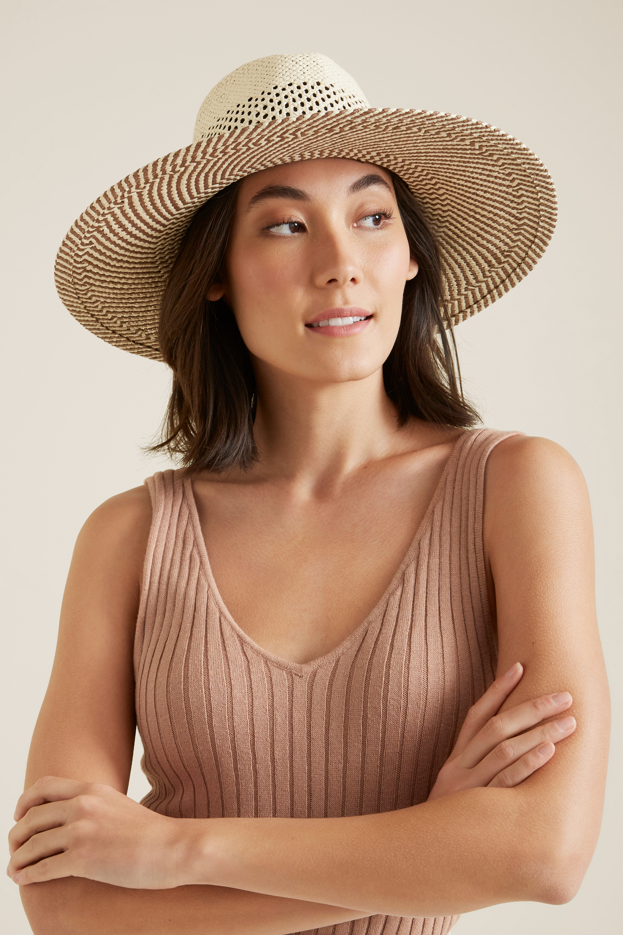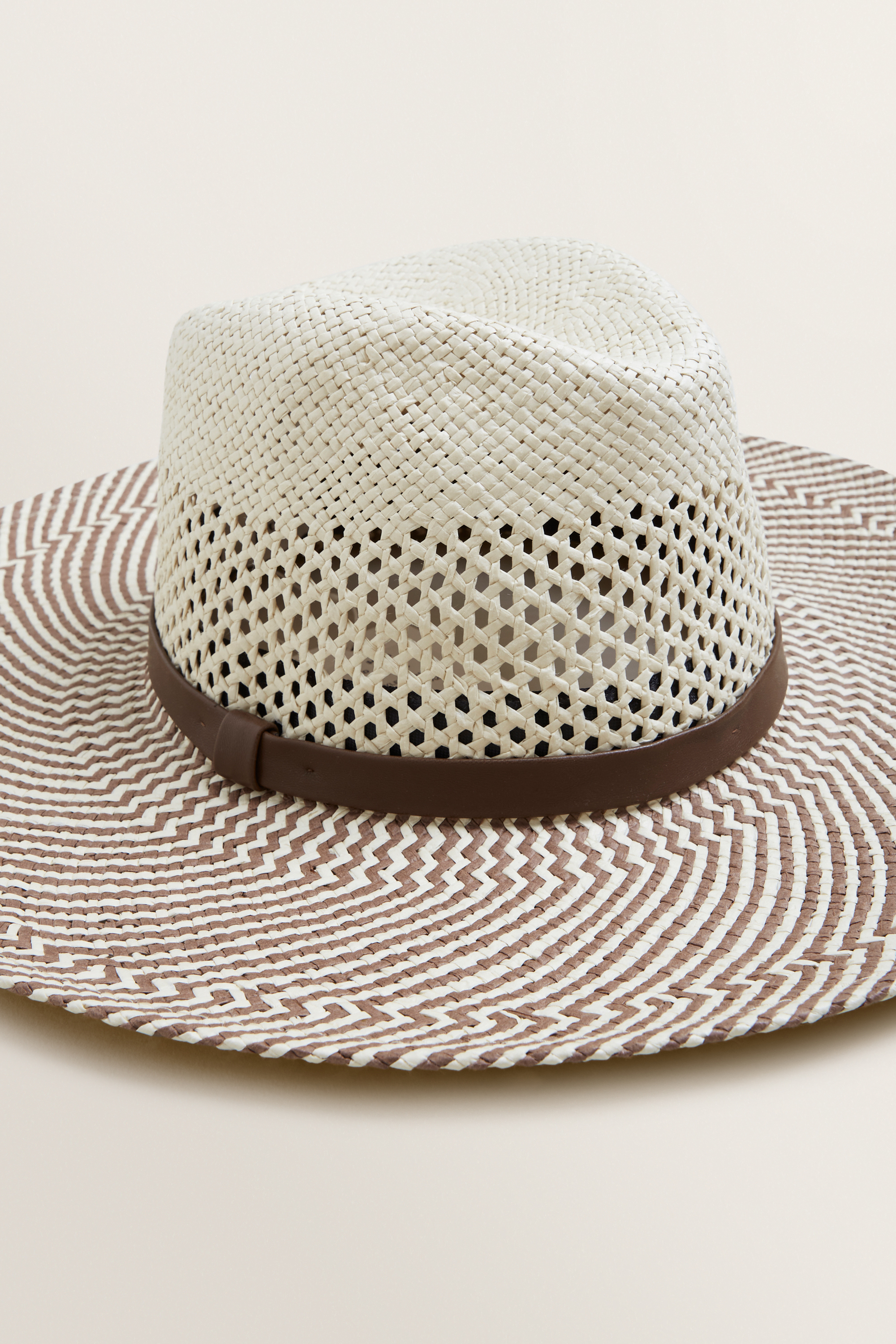 Sporting a woven design, this Two Tone Panama features a leather-look trim and adjustable internal band.