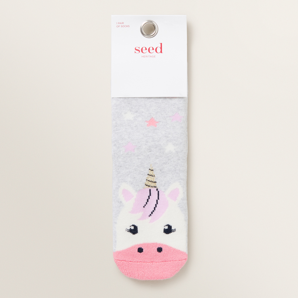 These Unicorn Cosy Socks are a wintery favourite. She will love to wear these socks with long boots for added warmth. They feature a sweet unicorn motif across the fabric. Made from a Cotton/Nylon/Elastane blend, they are available in sizes S, M and L.