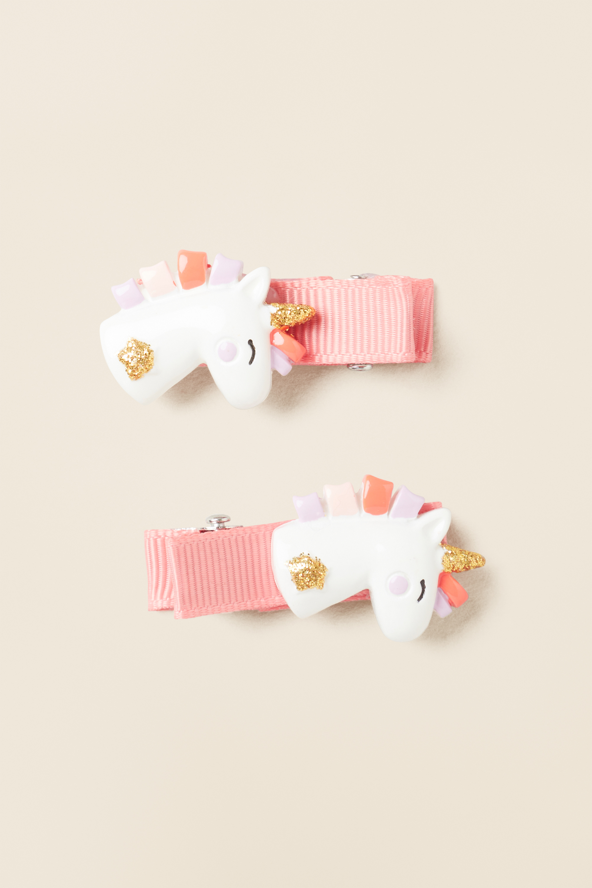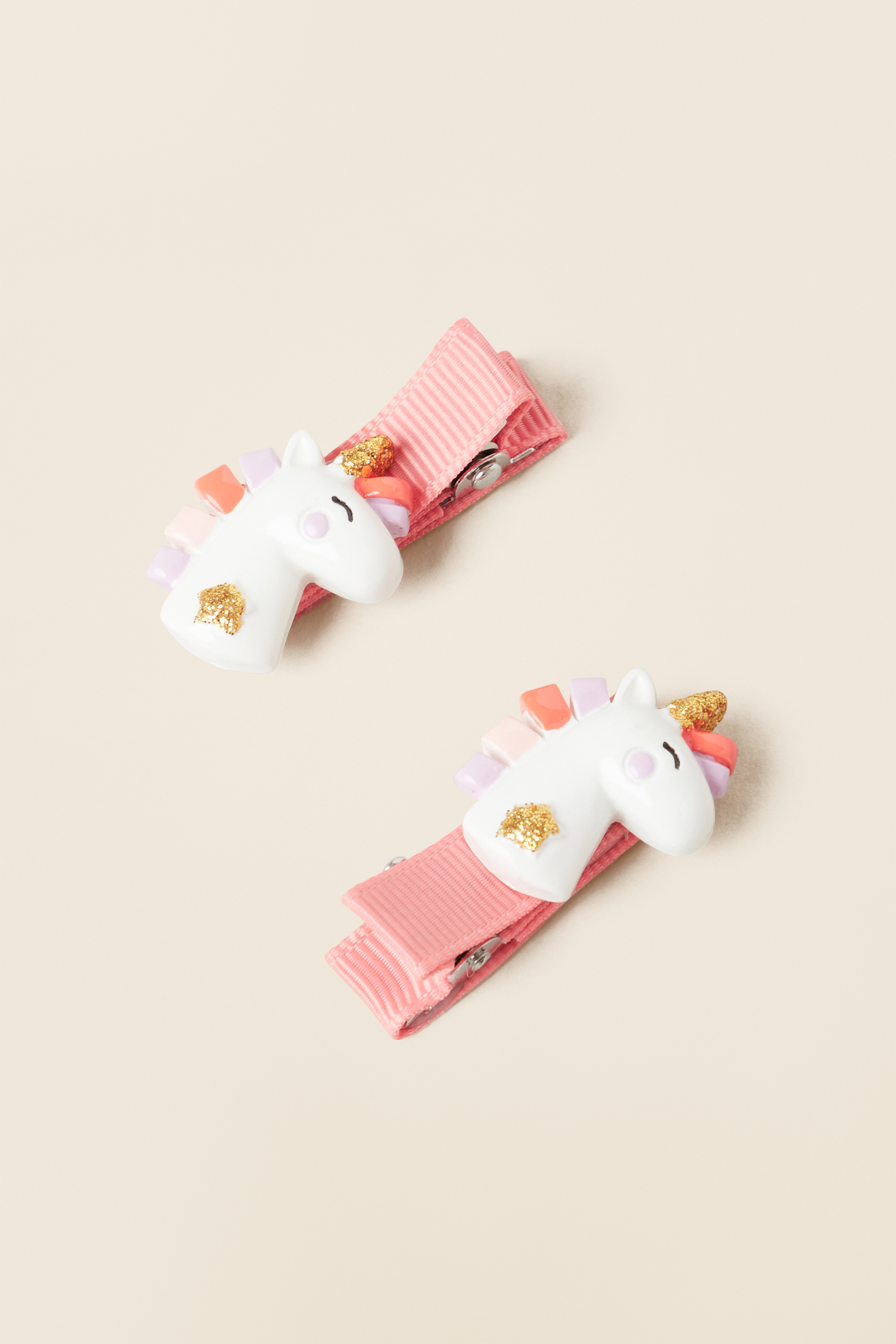 Add a cute and girly touch to your outfit with this set of duck clips. Decorated with unicorn details, these clips are perfect for mixing and matching in your hair styles. This product is not a toy and is not suitable for children 3 years and under.