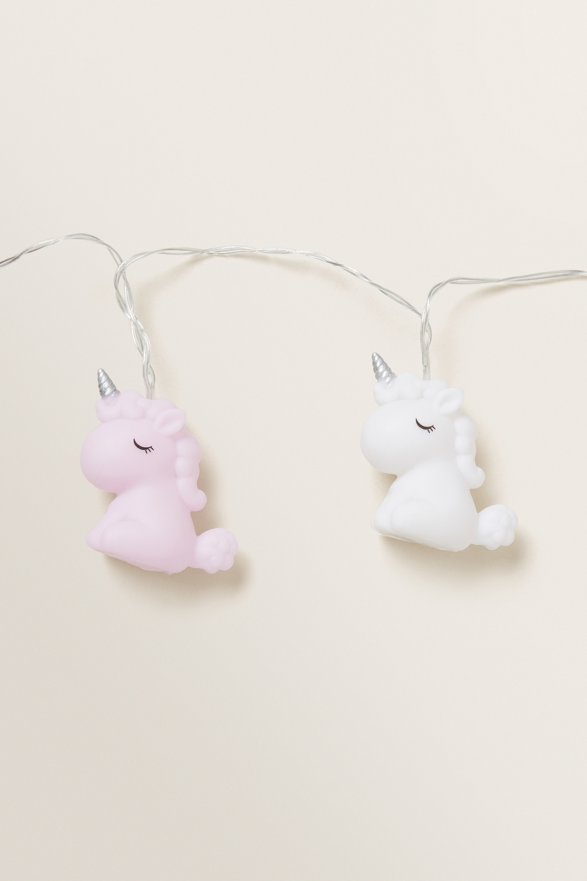 Illuminate your space, with these Unicorn String Lights. This set features 10 assorted unicorn lights, hanging on a wire garland.