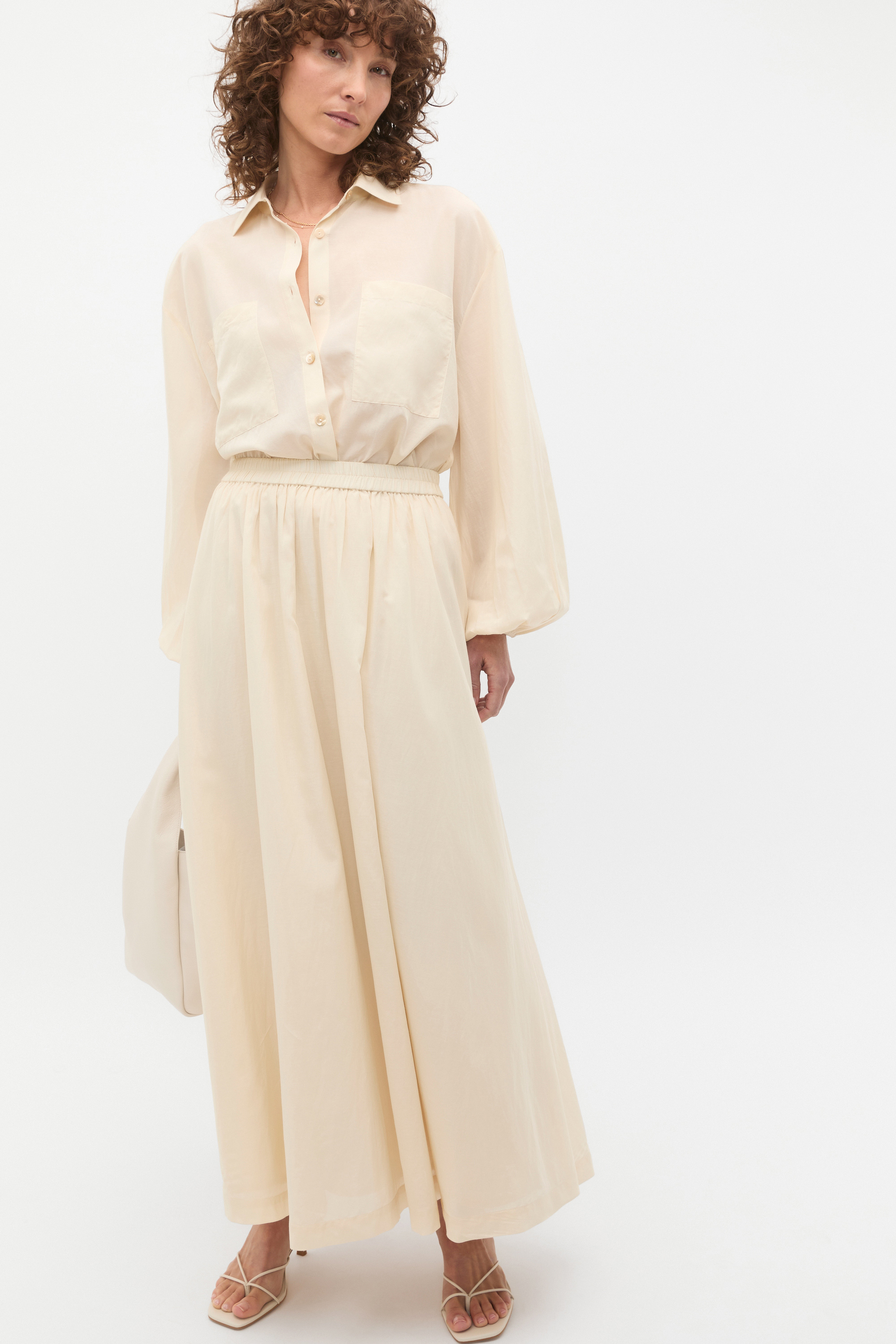 Lightweight and luxe with a feminine finish, this skirt is a voile design to elevate your casual looks. Crafted in a soft blend containing cotton, it features an elasticated waistband and falls to a maxi length in a flowing A-line shape.