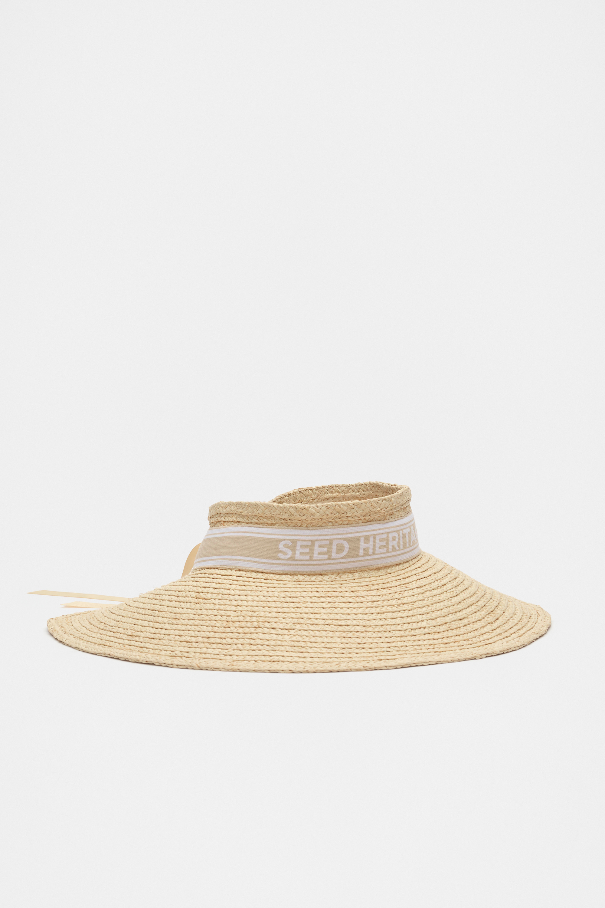 For an elegant statement to top off your summer outfits, this visor is the perfect choice. In a classic raffia, it features a wide brim, Seed logo tie with a contrast trim and an elastane back for a comfortable fit.