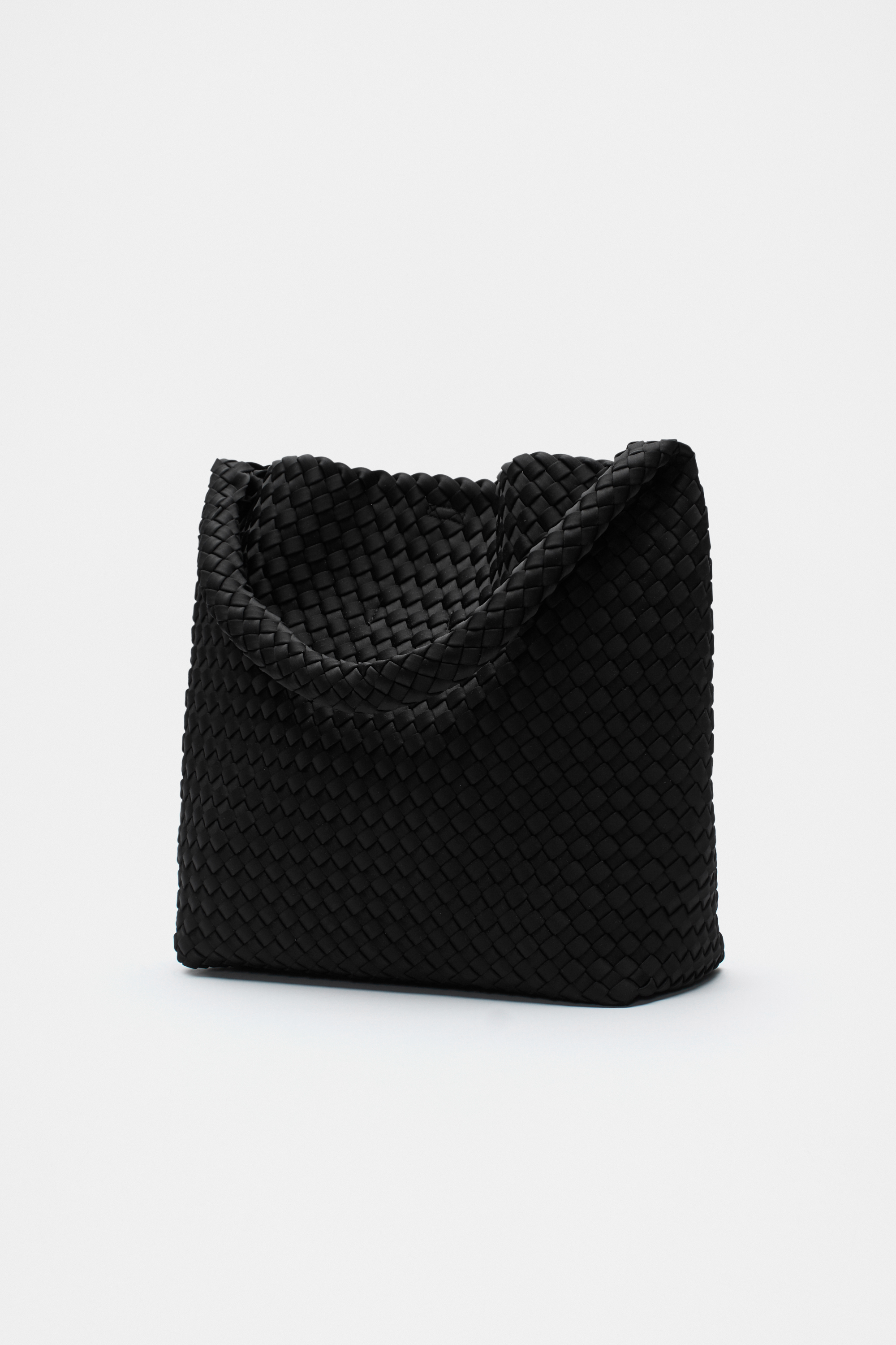Versatile and textured with an on-trend finish, this woven bag is set to be your new go-to. Available in different colours, there's an option to suit any wardrobe. It secures with a magnetic closure at the topline. Style with the matching woven pouch for a chic travel set.