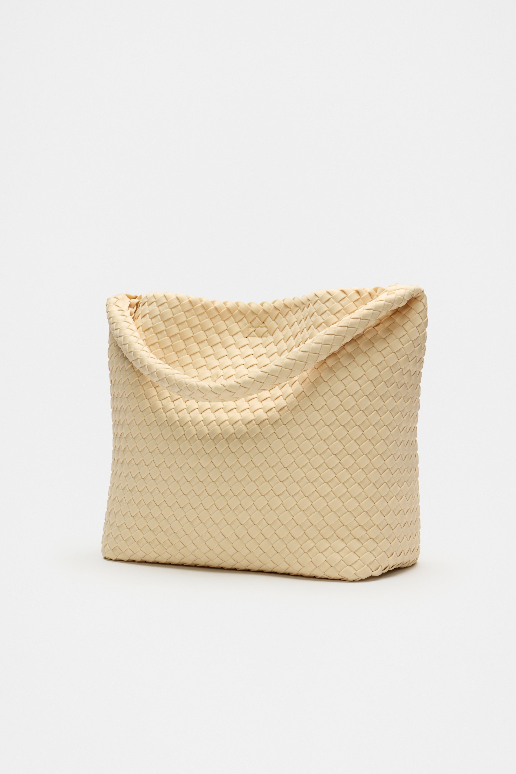 Versatile and textured with an on-trend finish, this woven bag is set to be your new go-to. Available in different colours, there's an option to suit any wardrobe. It secures with a magnetic closure at the topline. Style with the matching woven pouch for a chic travel set.