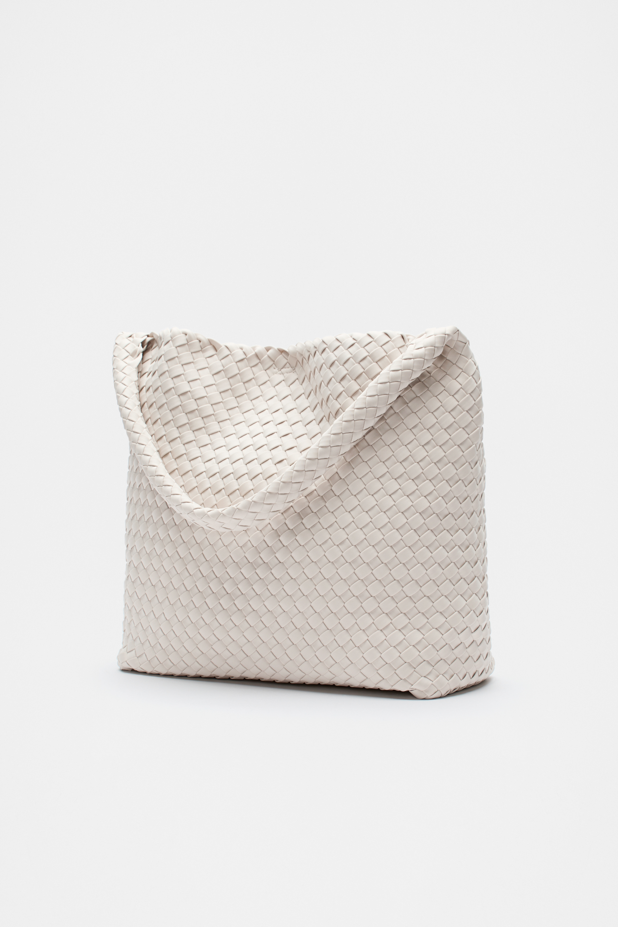 Versatile and textured with an on-trend finish, this woven bag is set to be your new go-to. Available in different colours, there's an option to suit any wardrobe. It secures with a magnetic closure at the topline. Style with the matching woven pouch for a chic travel set.