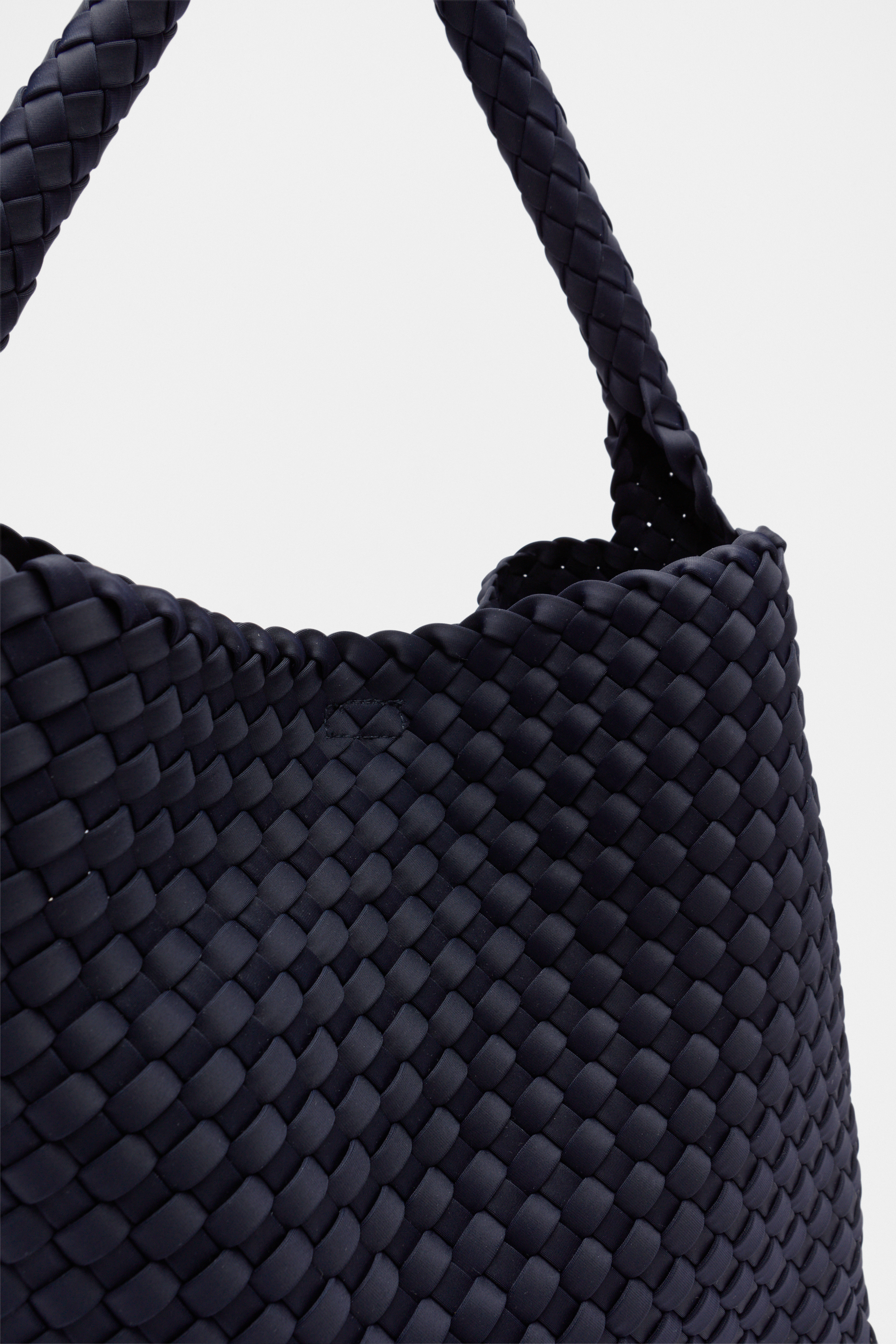 Versatile and textured with an on-trend finish, this woven bag is set to be your new go-to. Available in different colours, there's an option to suit any wardrobe. It secures with a magnetic closure at the topline. Style with the matching woven pouch for a chic travel set.