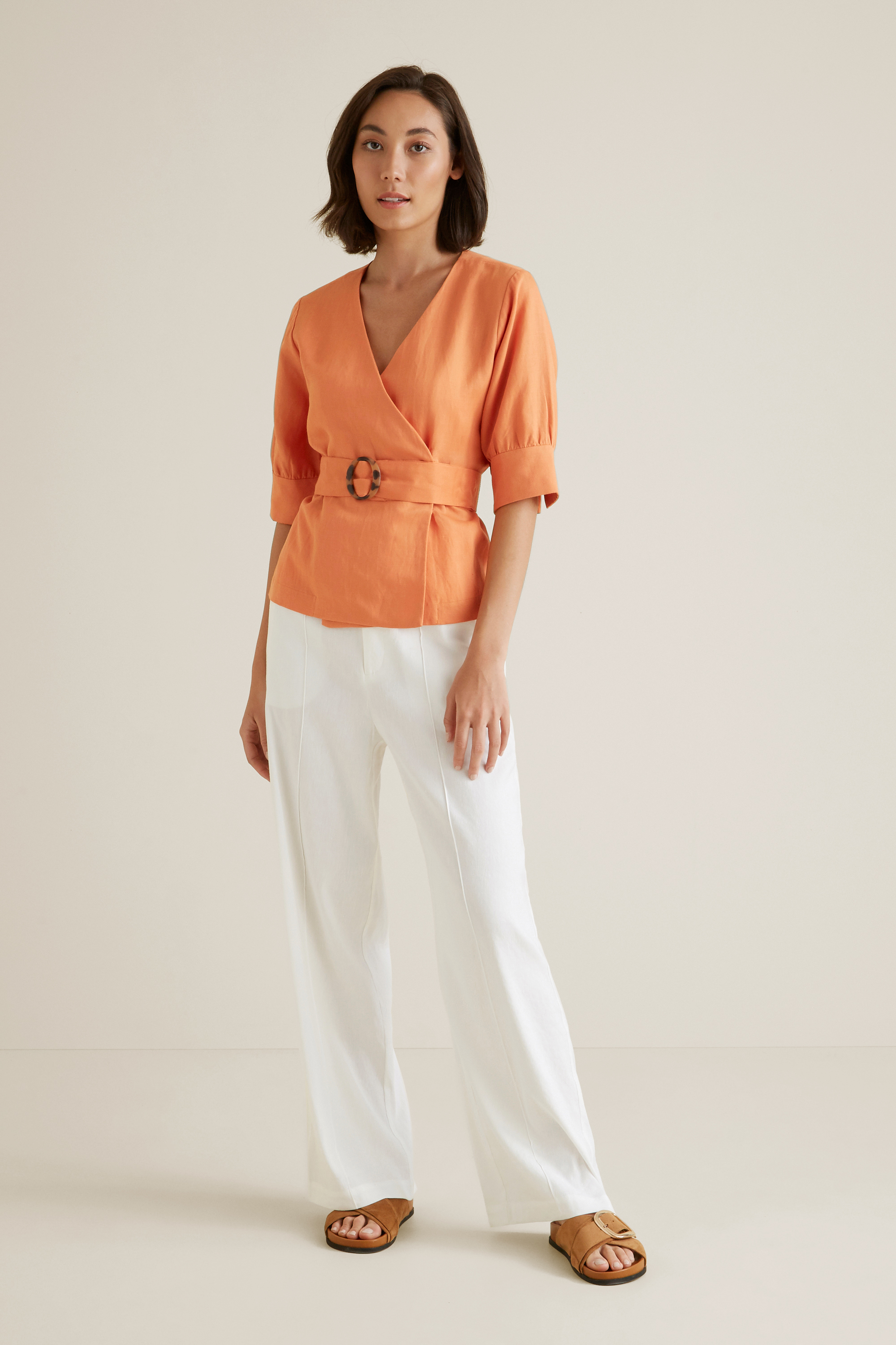 Incorporate a coastal silhouette to your summer edit, with this Wrap front Blouse. Designed with a plunging V neckline, this blouse is detailed with puff sleeves, belted waist and wrap closure. For your reference, our model is 176 cm tall and wears a size 8. Check the label inside of the garment for care instructions.