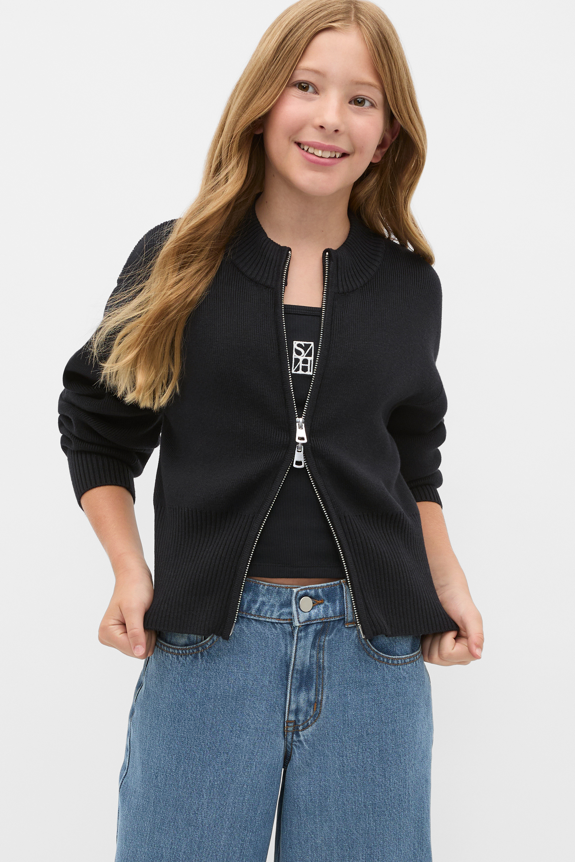 Zip Through Knit Cardigan  Black  hi-res Zip Through Knit Cardigan  Black  hi-res Zip Through Knit Cardigan  Black  hi-res Zip Through Knit Cardigan  Black  hi-res