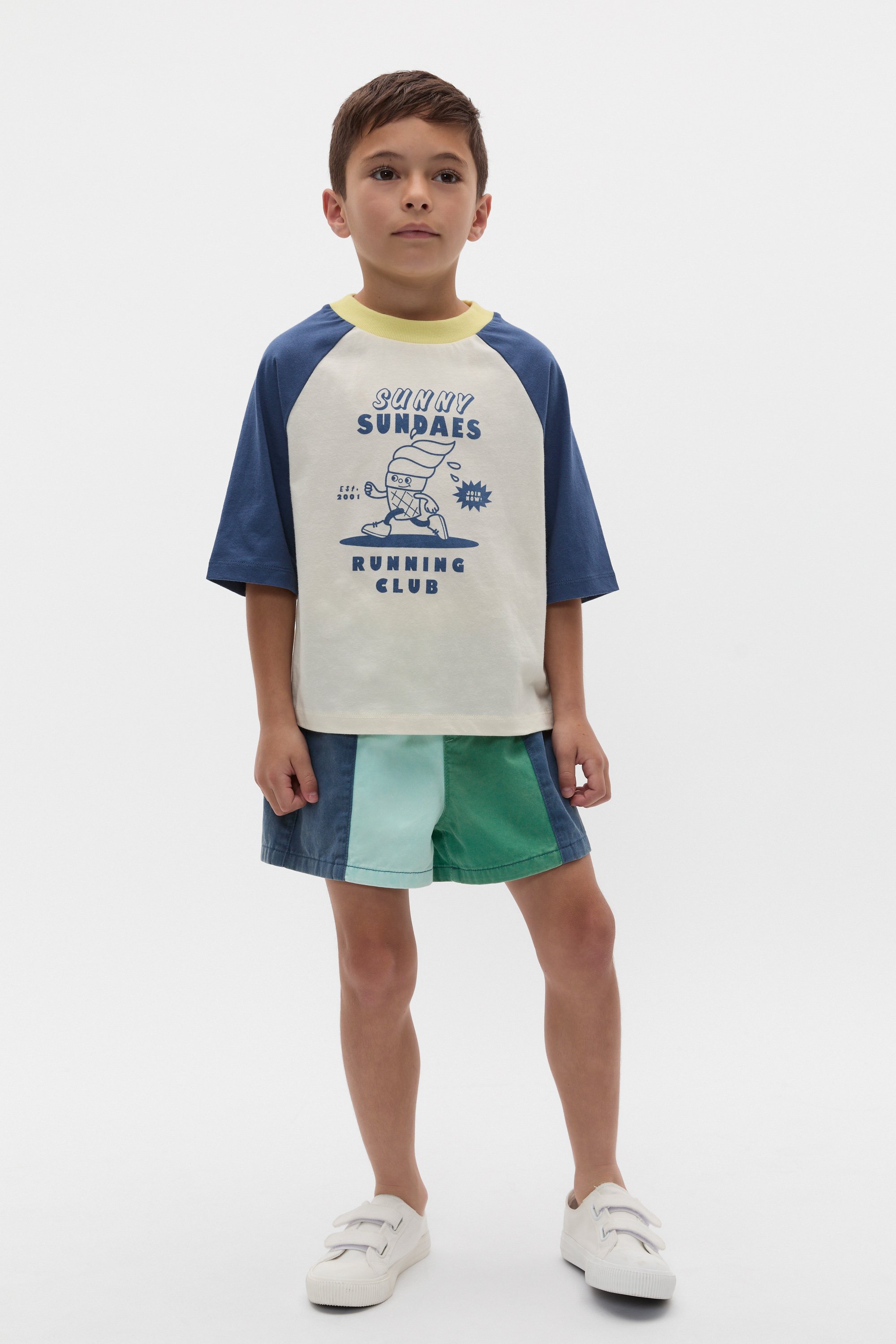 Cute and colourful, these shorts are ready for running, jumping and all day play. Crafted in premium cotton, they feature an elasticated waistband, pockets and a bold colourblock design.