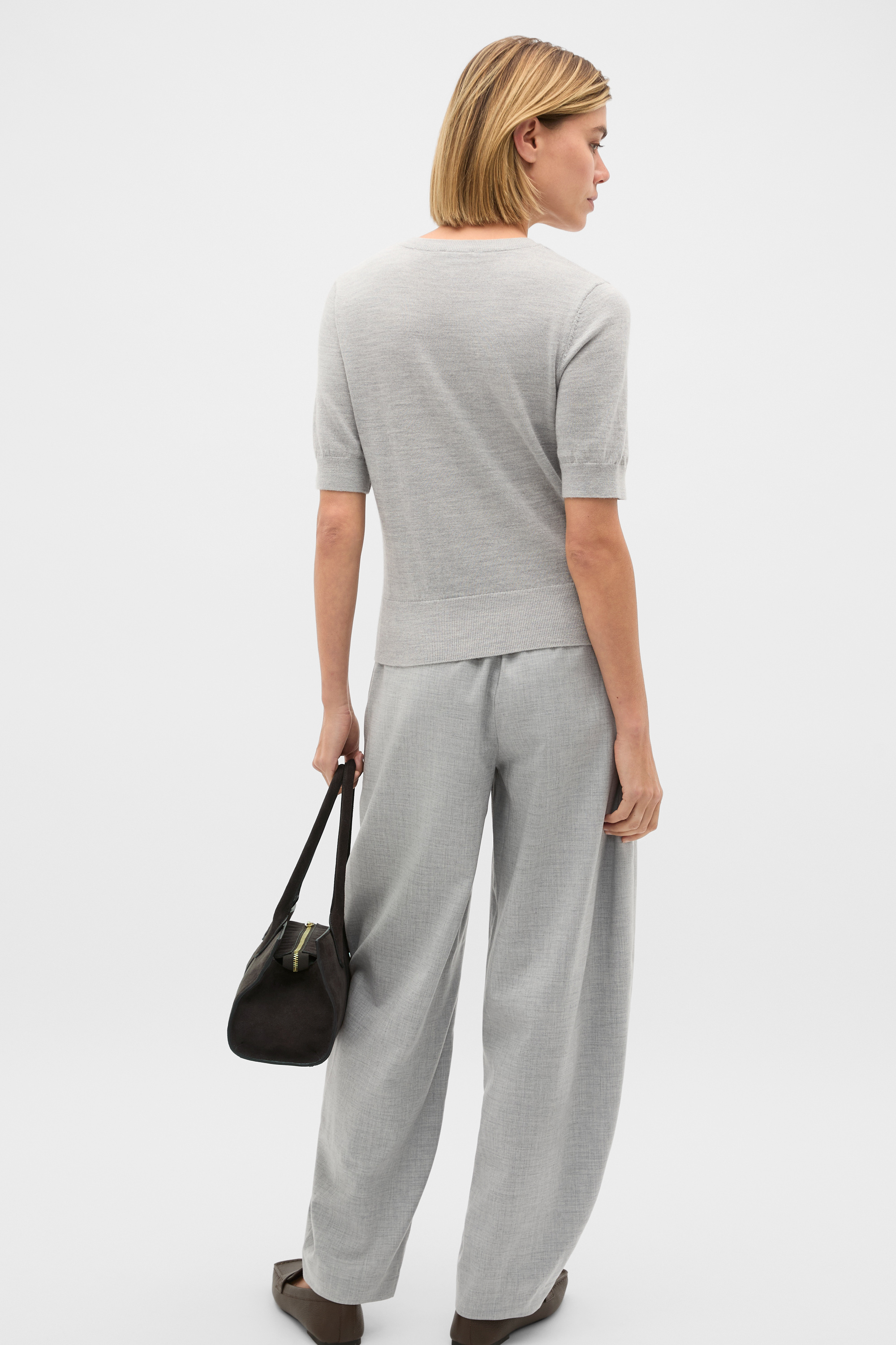 An essential in luxe Merino wool, this crew neck tee elevates a classic style and is set to be a new wardrobe staple. It features a round neck, short sleeves and ribbed trims.