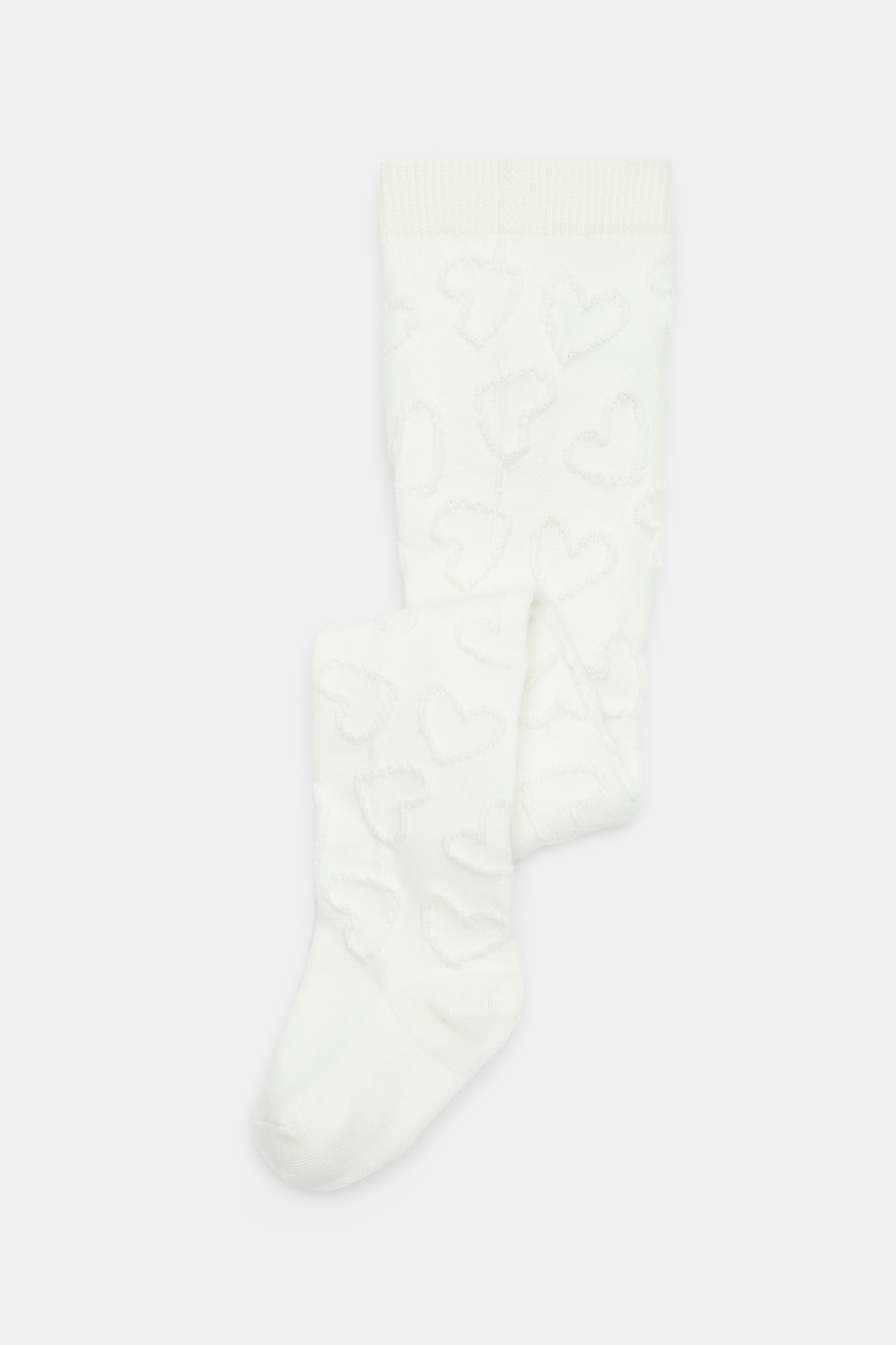 Baby Heart Jacquard Tights  Vanilla  hi-res Baby Heart Jacquard Tights  Vanilla  hi-res
