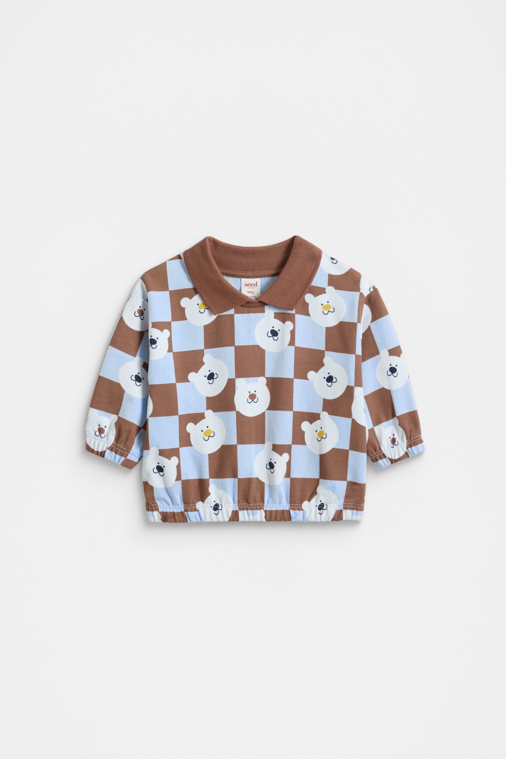 Comfortable and too-cute, this sweater is crafted in premium cotton and features the sweetest design of checks and bears. It features a soft polo collar and long sleeves with elasticated trims and cuffs.