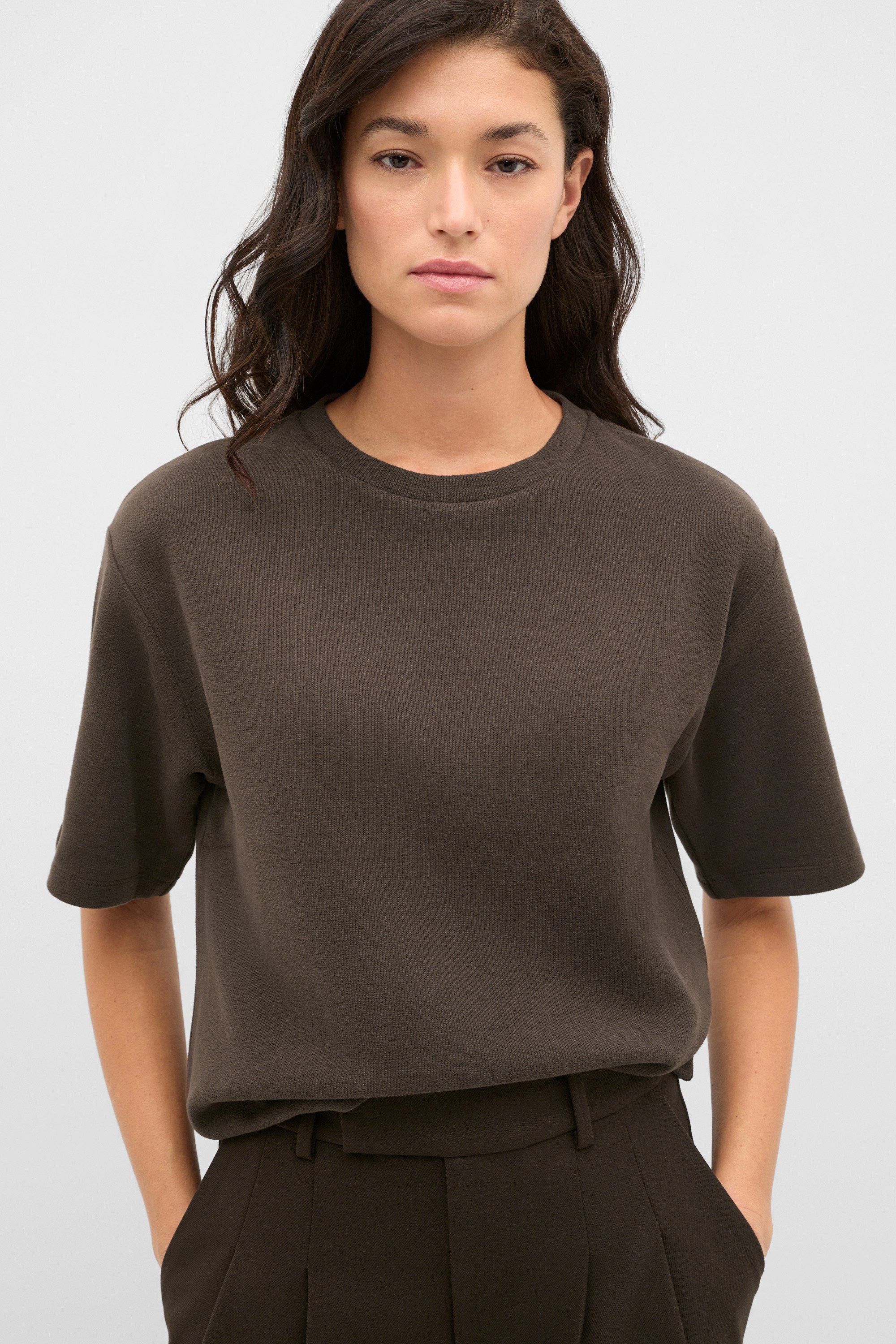 Brushed Boxy Crew Neck Tee  Coffee Bean  hi-res Brushed Boxy Crew Neck Tee  Coffee Bean  hi-res Brushed Boxy Crew Neck Tee  Coffee Bean  hi-res Brushed Boxy Crew Neck Tee  Coffee Bean  hi-res