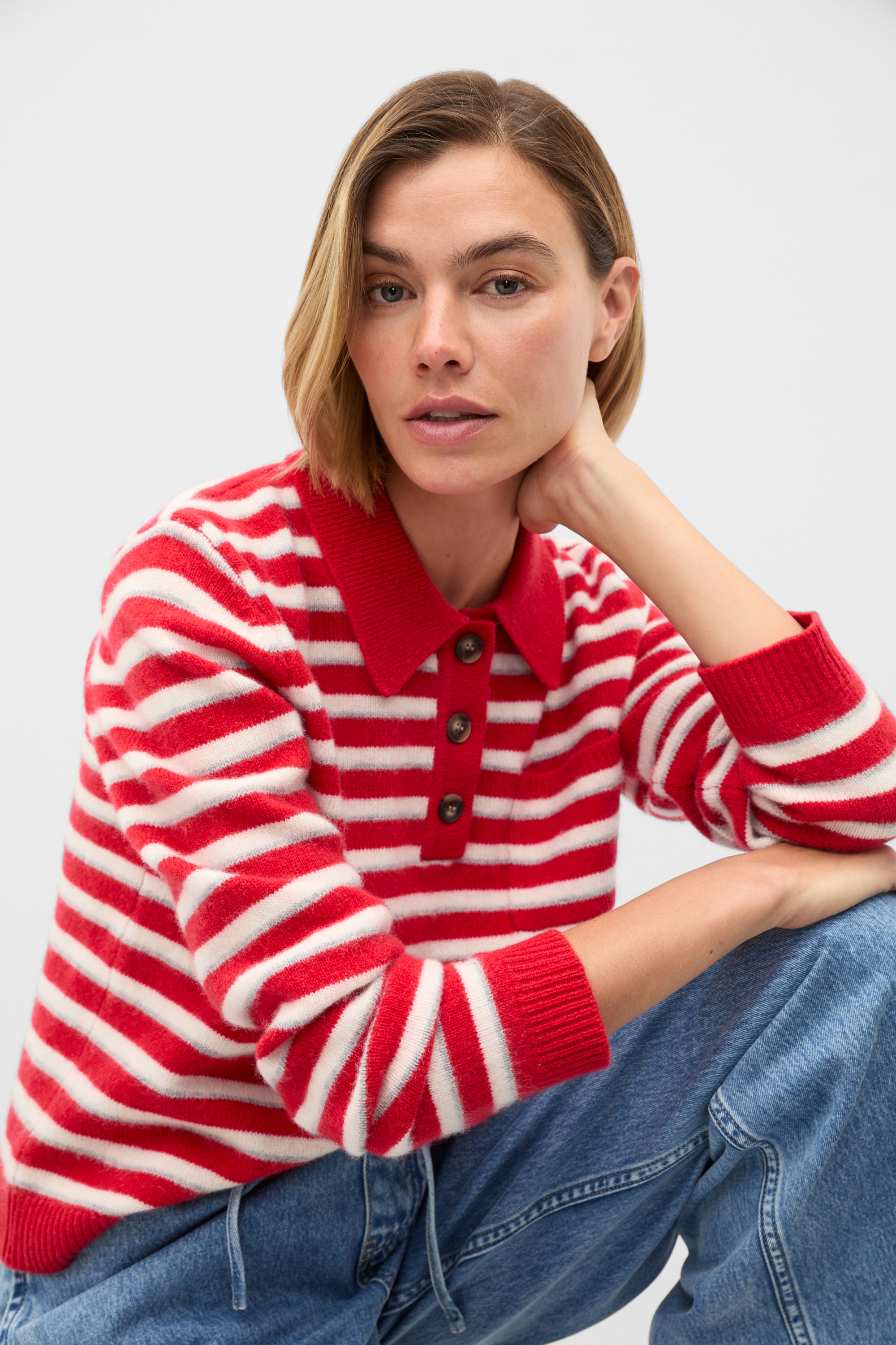 Brushed Merino Stripe Polo Knit  Poppy Stripe  hi-res Brushed Merino Stripe Polo Knit  Poppy Stripe  hi-res Brushed Merino Stripe Polo Knit  Poppy Stripe  hi-res Brushed Merino Stripe Polo Knit  Poppy Stripe  hi-res
