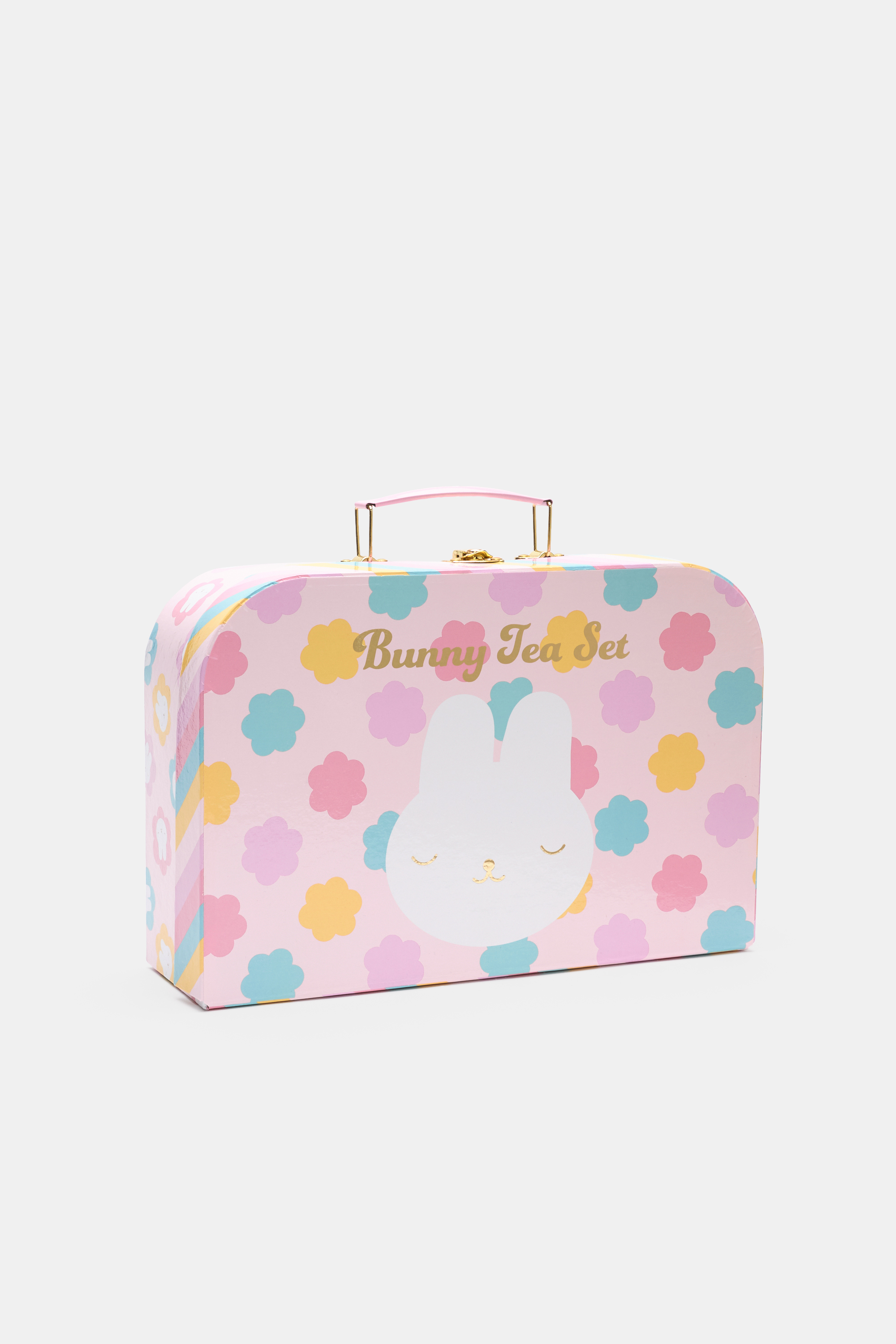Enjoy a spot of imaginary tea with this adorable afternoon tea set. Made out of tin with a colourful bunny and flower design, the set includes a teapot, four teacups, four saucers, four plates and a tray. Comes in a handy carry case. Due to small parts, not suitable for children three years and under, potential choking hazard.