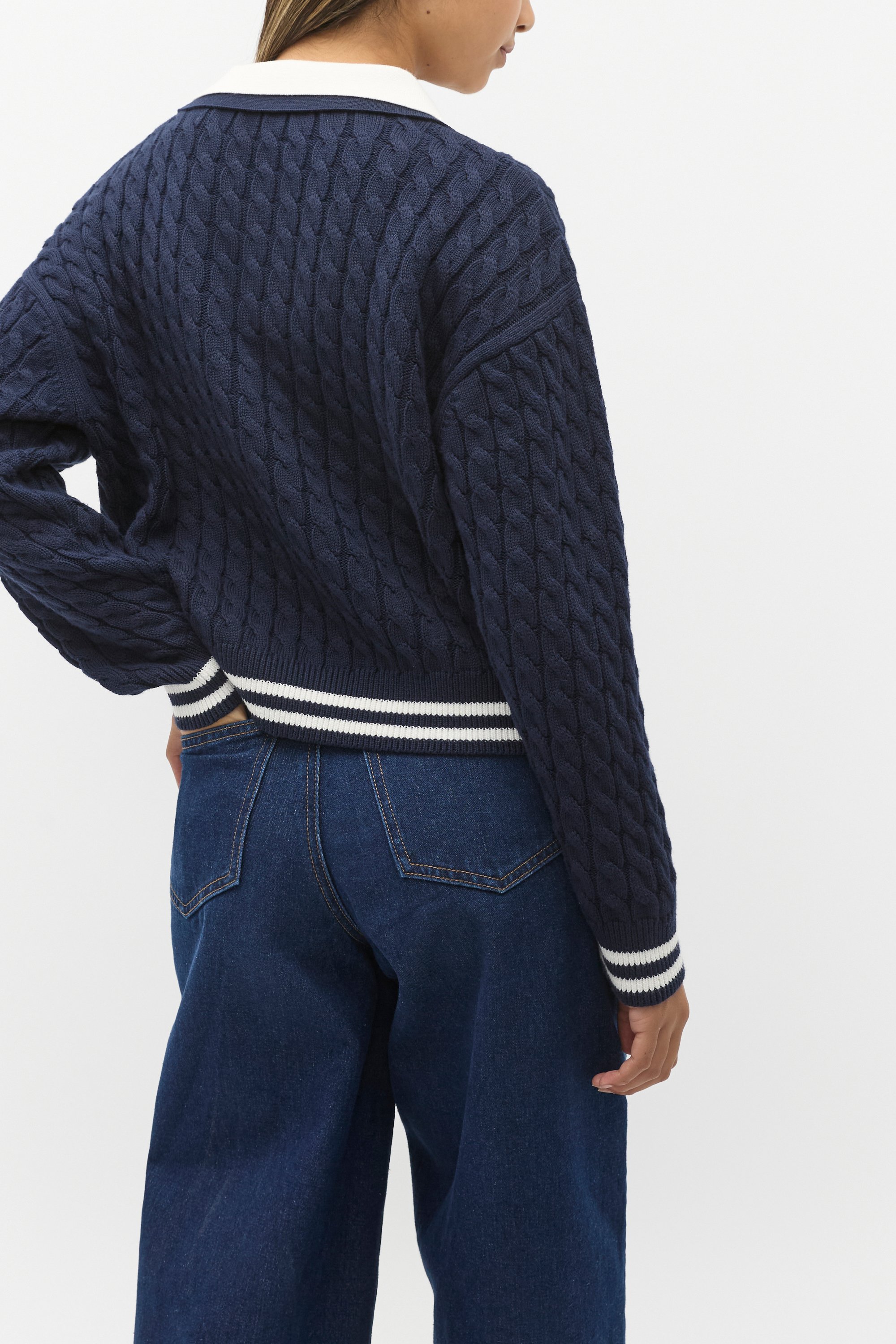 Cable Collar Knit Sweater  New Navy  hi-res Cable Collar Knit Sweater  New Navy  hi-res Cable Collar Knit Sweater  New Navy  hi-res Cable Collar Knit Sweater  New Navy  hi-res
