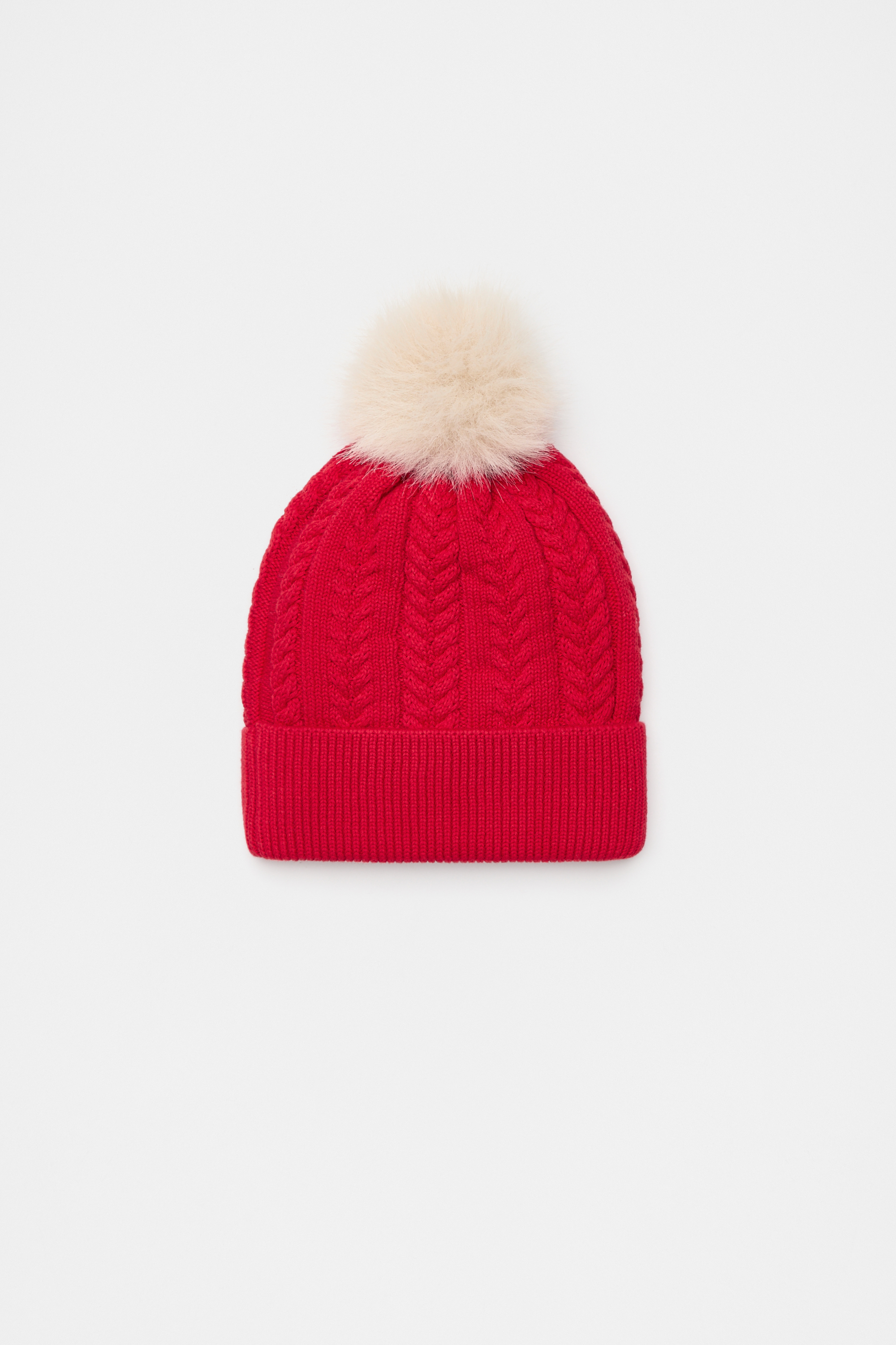 Top off her winter looks with this cute knit beanie. So soft and cosy, it features a fluffy pom pom and is finished in a cable knit.