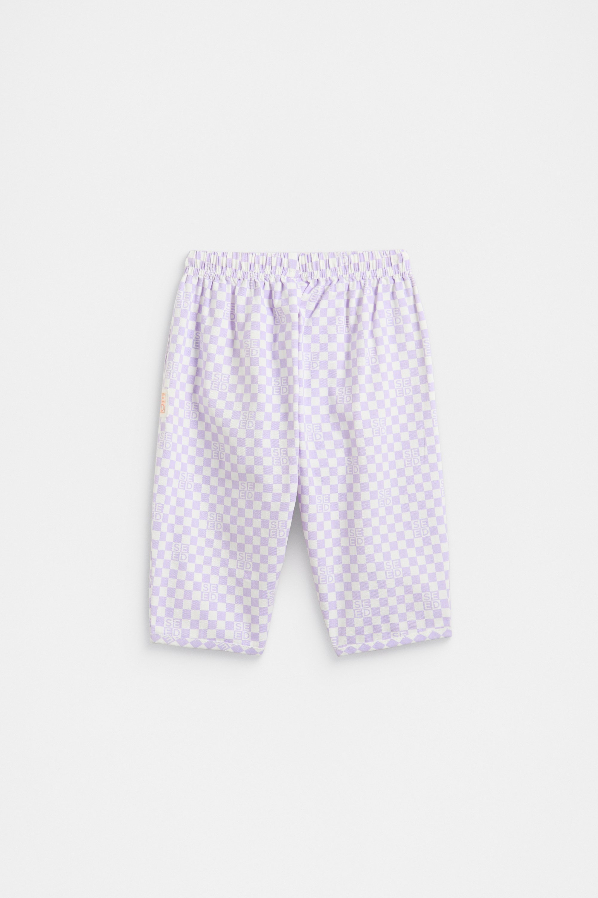 Finished in the most adorable lavender check, these pants are an easy style to add to their day-to-day dressing. Crafted in premium cotton, they feature an elasticated waistband with a drawstring, pockets and a straight leg shape. Pair with the matching check styles for too-cute coordination.