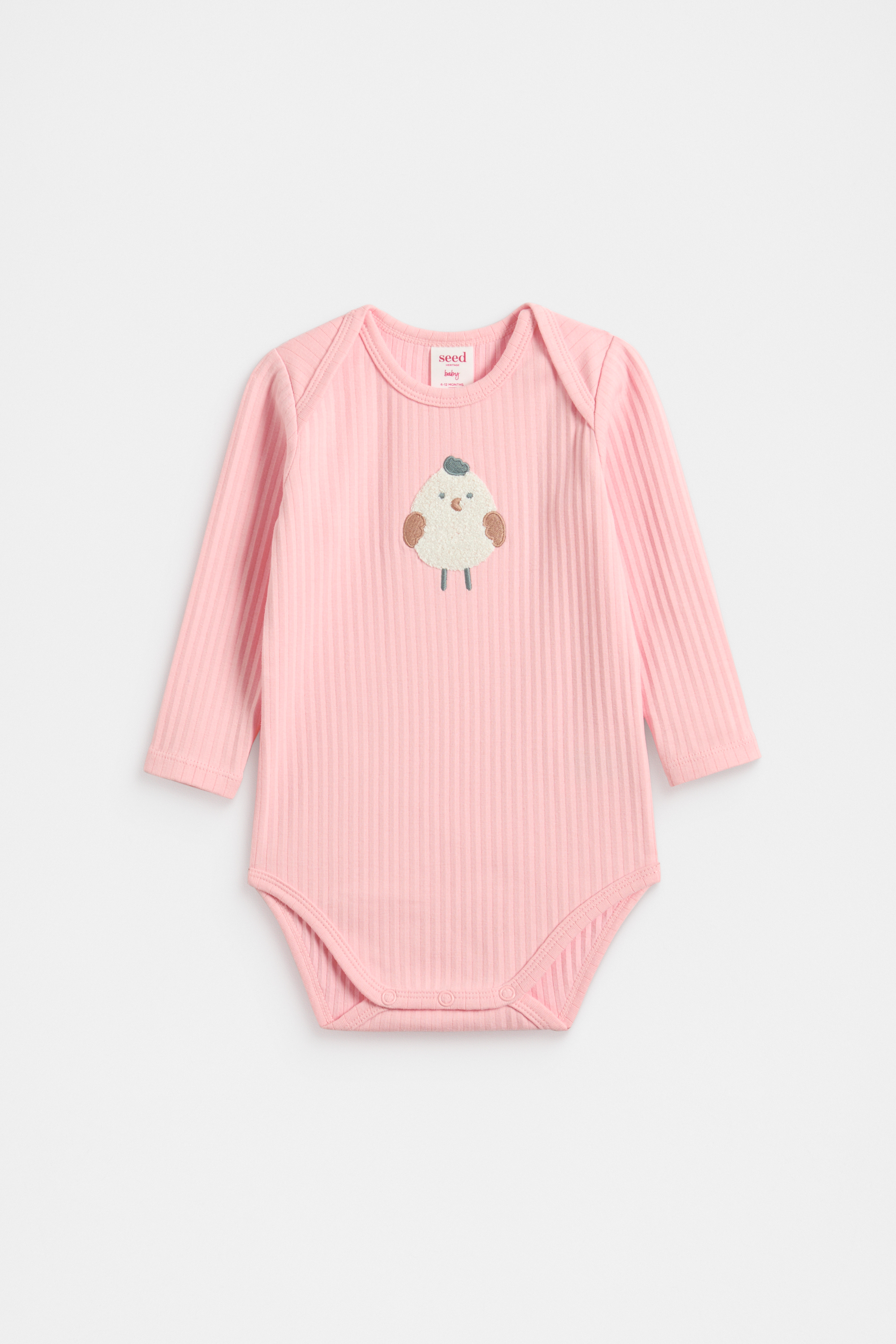 Made from an ultra-soft cotton blend with the perfect amount of stretch and a ribbed texture, this long-sleeved bodysuit is a must-have for any newborn. The round-neck bodysuit features an embroidered chick, as well as snap fastenings at the gusset for quick and easy changes.