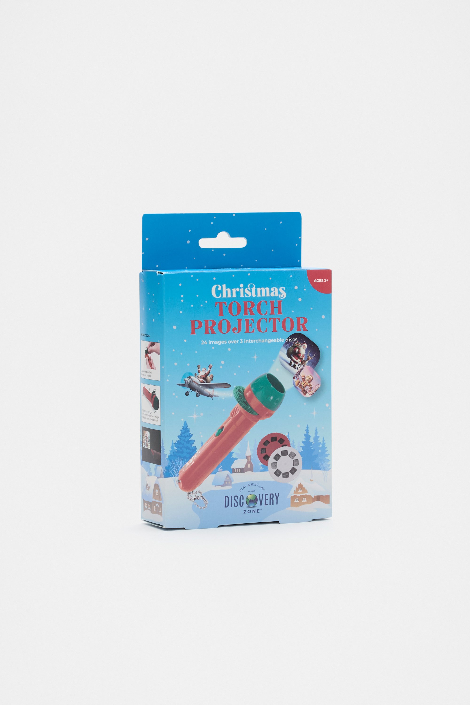 Get in the festive spirit with this fun Christmas-themed torch projector. It includes 24 images over three interchangeable discs.