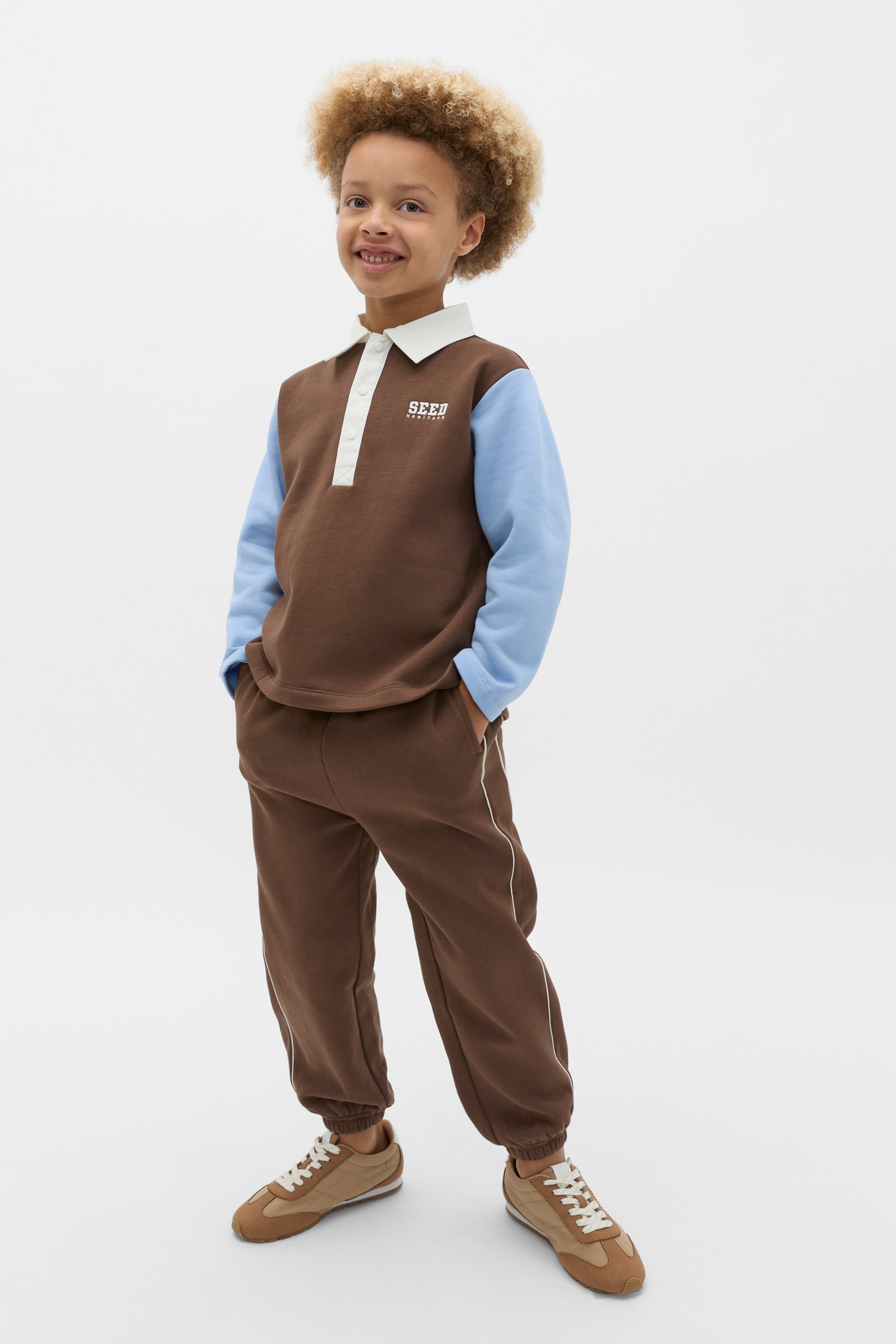 With a sporty and fun colourblock design, this rugby sweater is a retro design for everyday wear. Crafted in premium cotton, it features a collar with a button placket, long sleeves and an embroidered Seed Heritage logo.