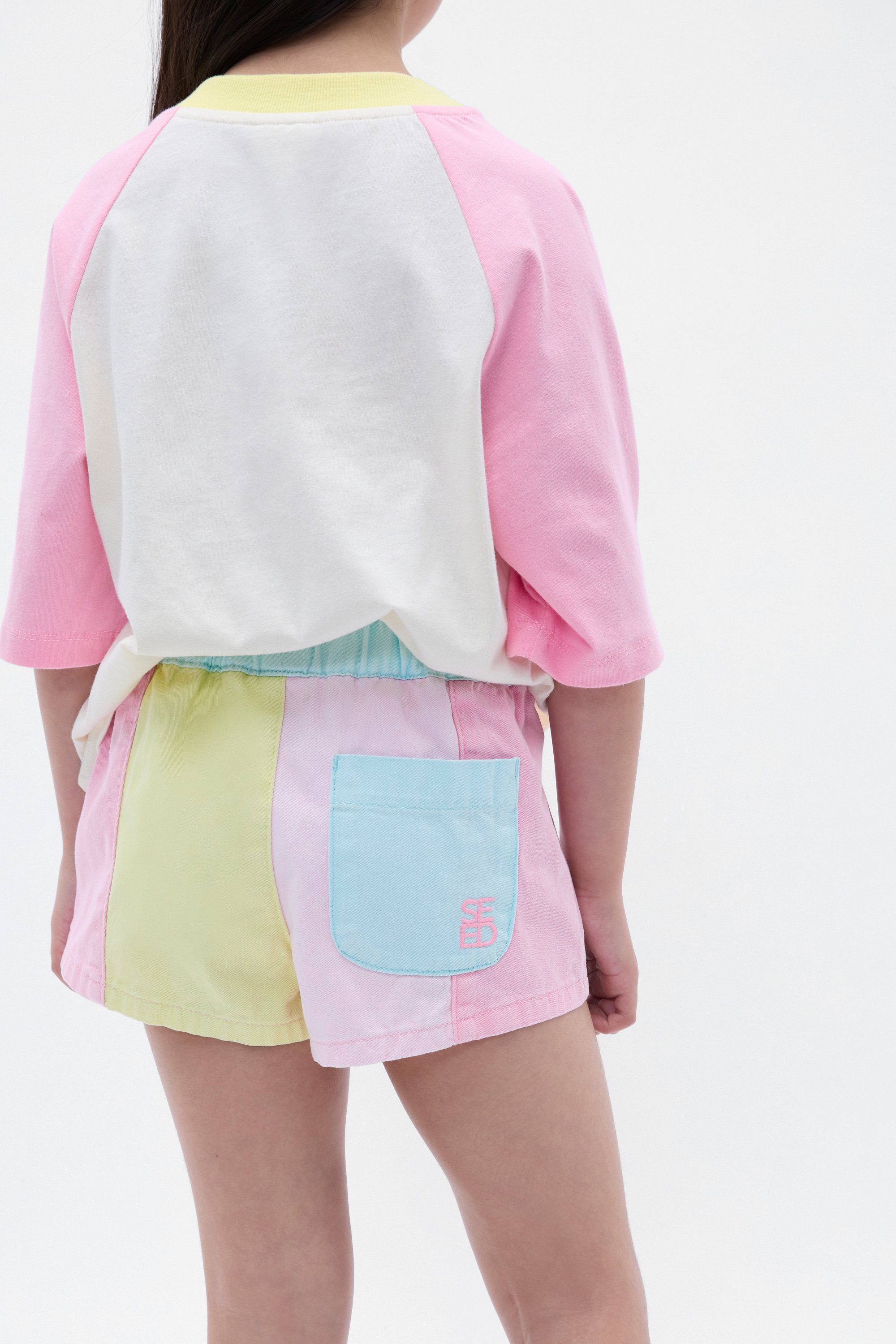 Playful and sweet, these shorts are a comfortable pair for all day play. Crafted in premium cotton denim, they feature a colourblock design, a back pocket and an embroidered logo detail.