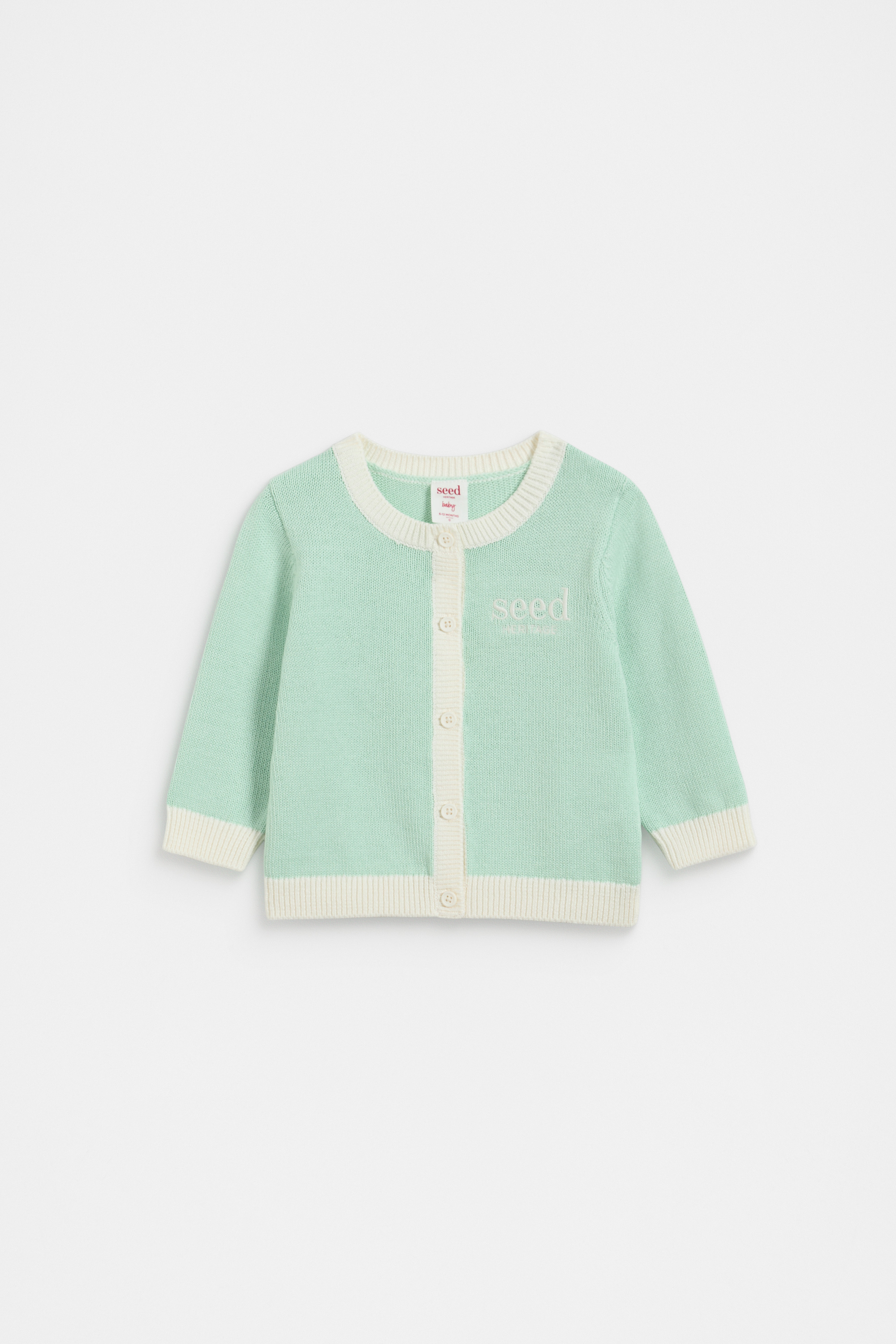 Your little love will be cuddlier than ever in this sweet knit cardigan. Crafted in premium cotton, it features a round neck, long sleeves and contrast ribbed trims. It's detailed with an embroidered Seed Heritage logo. For the most adorable matching set or for the perfect gift, style with the coordinating colourblock styles.