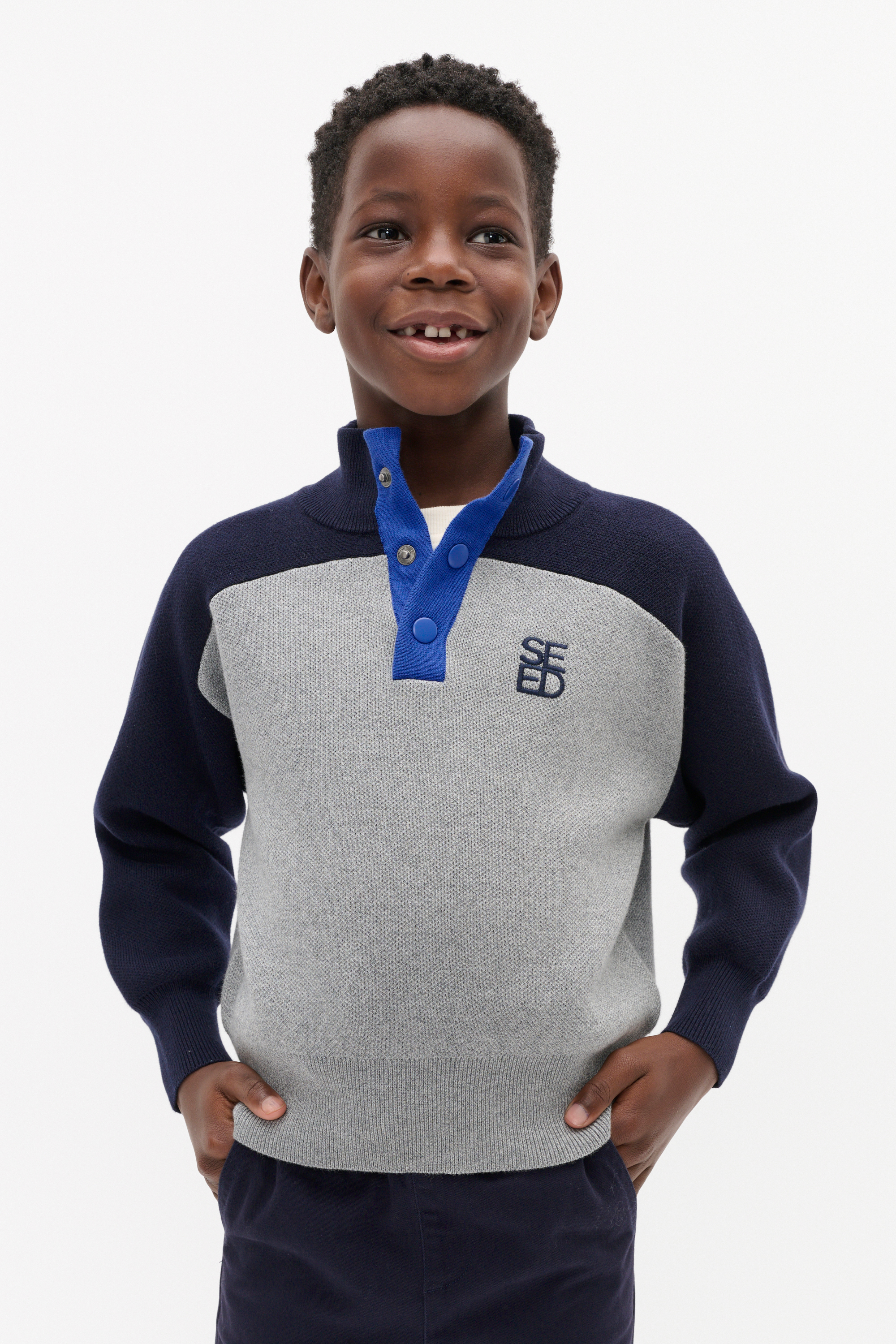 A throwback style for his everyday cool, this sweater has a bright and colourful Seed Heritage logo and a white contrast trim. Crafted in soft premium cotton, it has a knit finish it features a round neck, long sleeves and ribbed detailing at the trims.