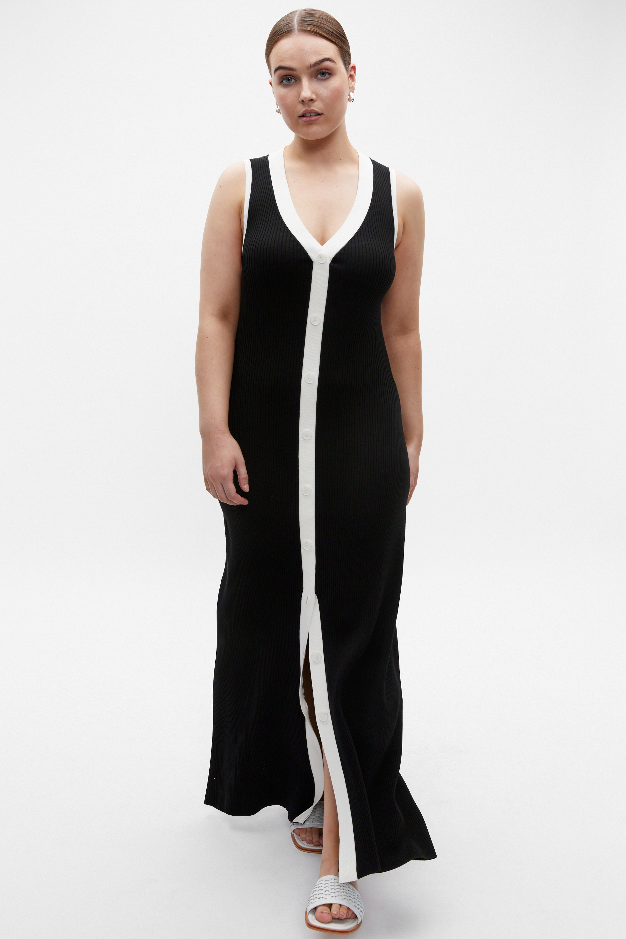 Contrast Knit Button Midi Dress  Black  hi-res Contrast Knit Button Midi Dress  Black  hi-res Contrast Knit Button Midi Dress  Black  hi-res Contrast Knit Button Midi Dress  Black  hi-res Contrast Knit Button Midi Dress  Black  hi-res Contrast Knit Button Midi Dress  Black  hi-res