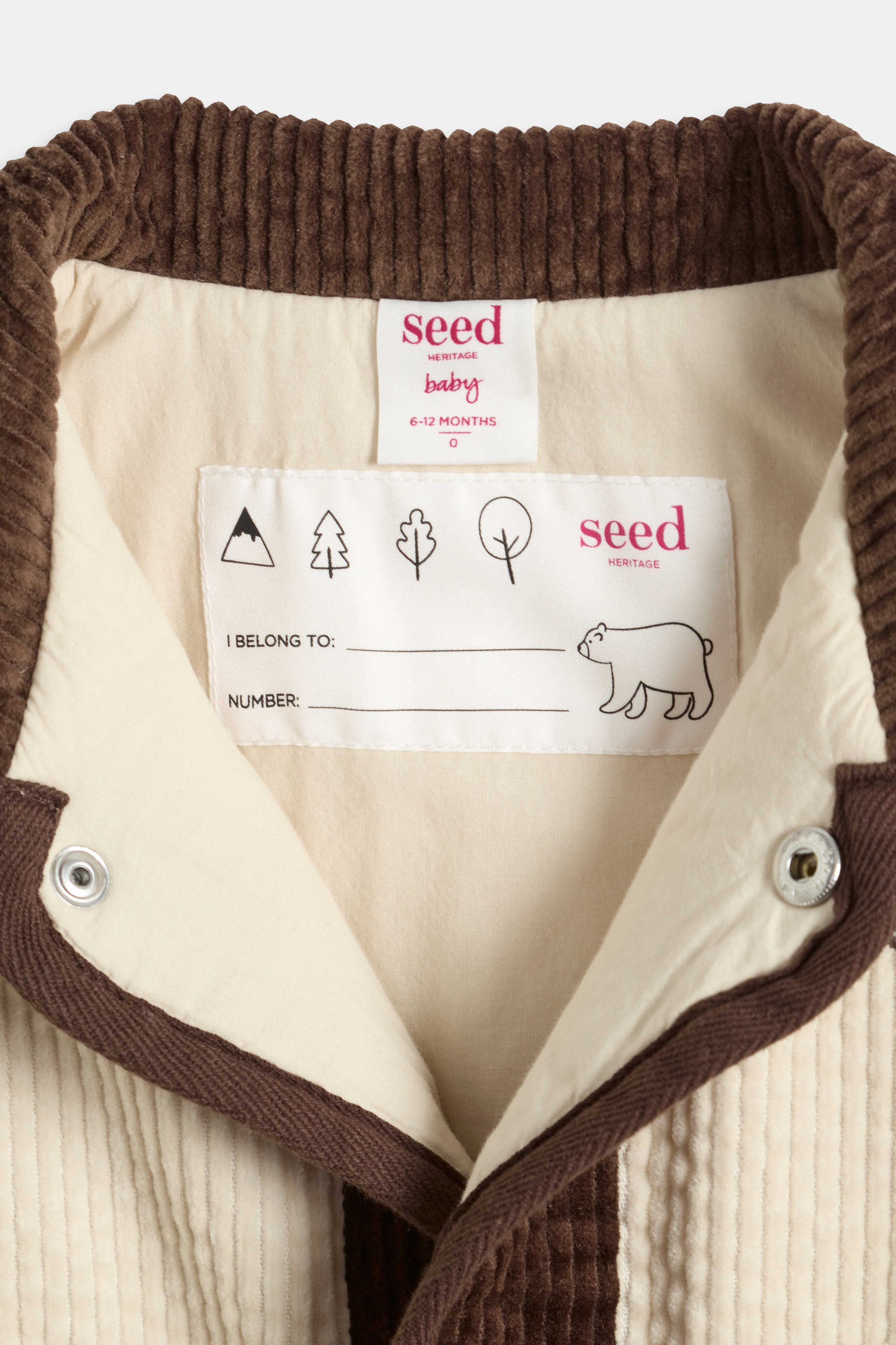 Dress him up through the cool change with this adorable cord jacket. Crafted in premium cotton, it features a contrast collar, a button-through front, angled pockets and an embroidered Seed Heritage logo.