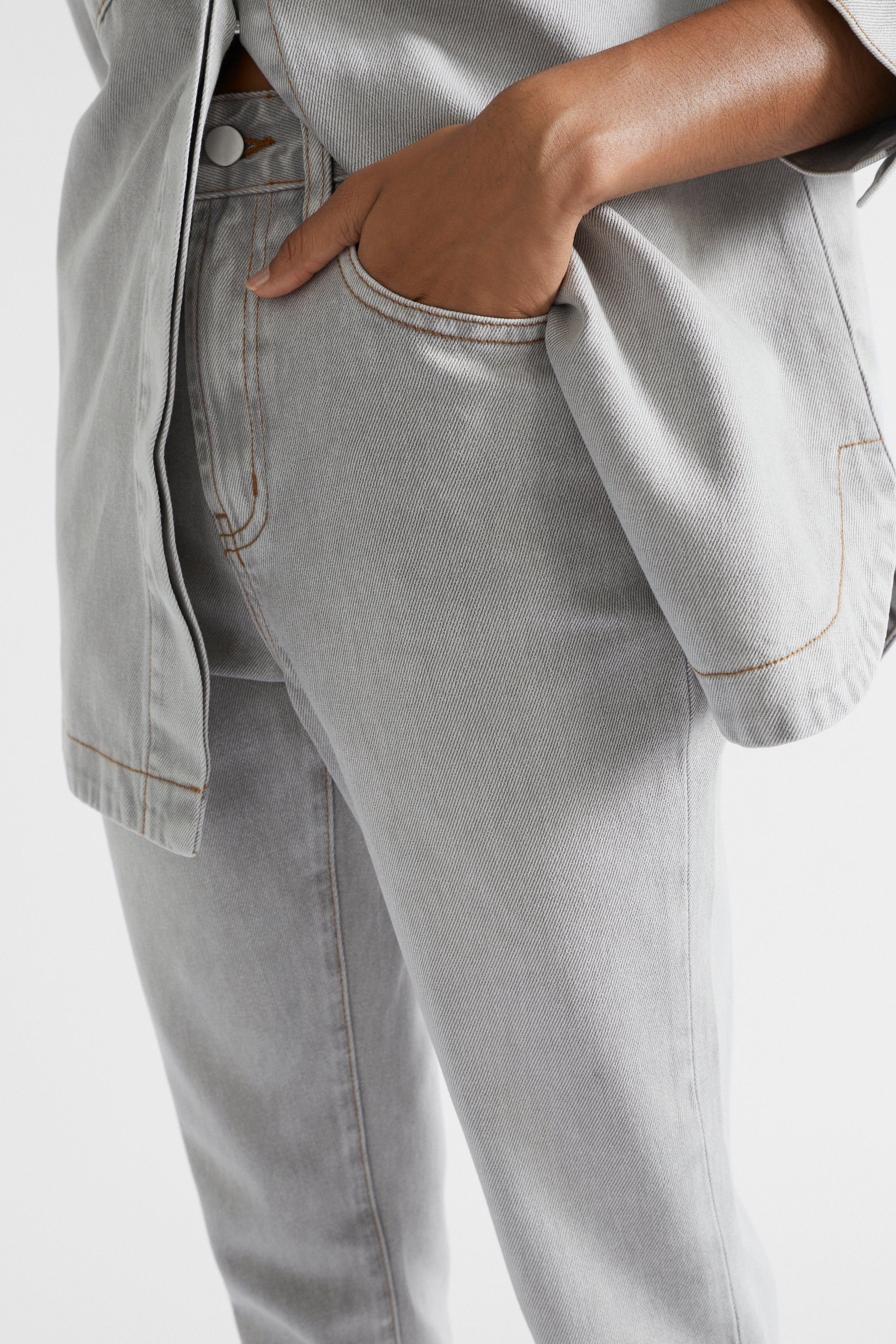 Crafted from a rigid denim, these slim-leg jeans are a versatile addition to your wardrobe. With a high rise and a cropped length, they feature a button and zip fly closure, front and back pockets, and contrast stitching details. By choosing our cotton products, you are supporting our investment in the Better Cotton mission.