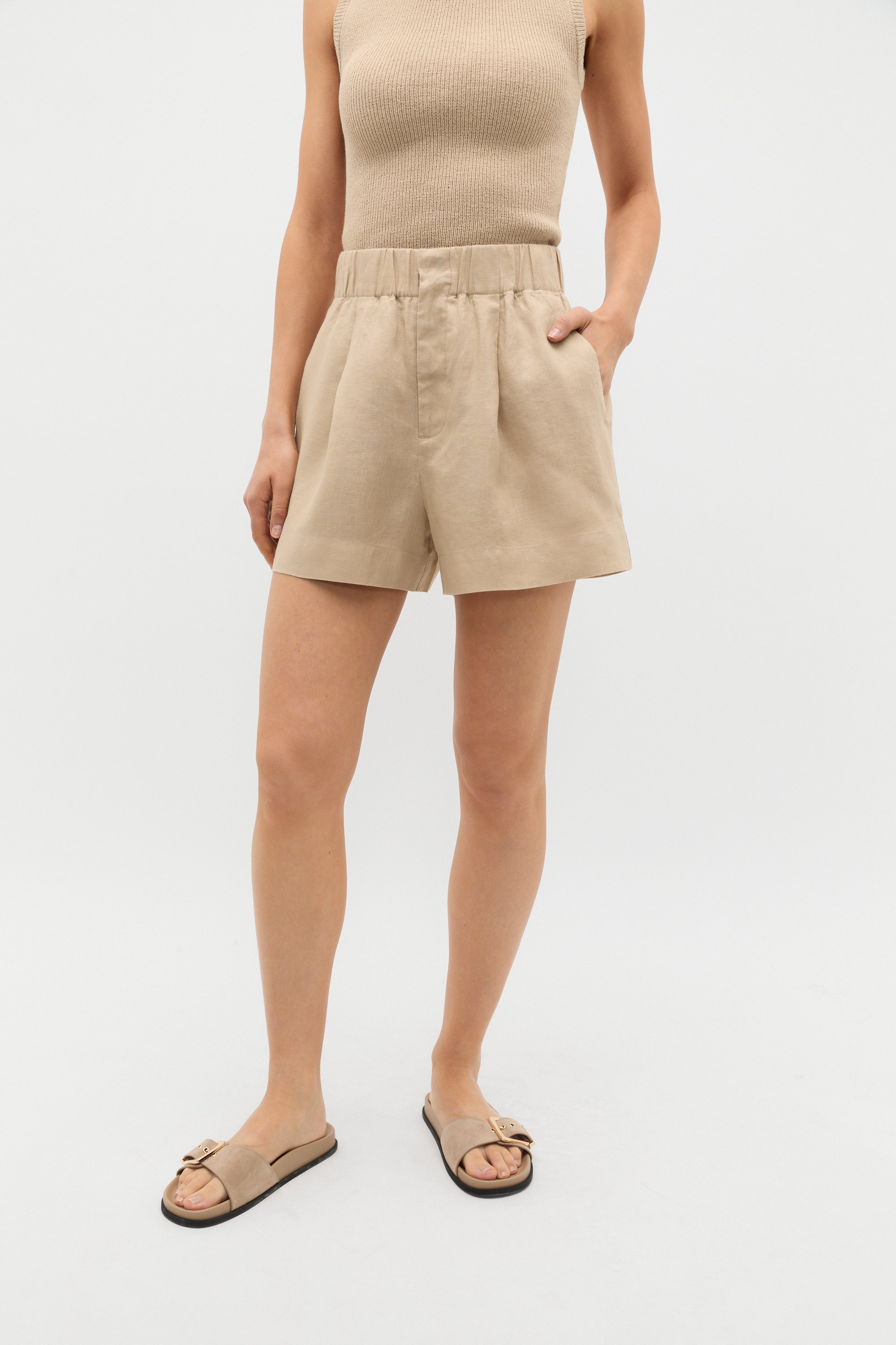 A wardrobe hero for the warmer months, these shorts are a comfortable and chic style. Crafted in pure linen, they feature an elasticated waistband, a zip front and gathered details. Style with the coordinating linen styles for an easy tonal set.