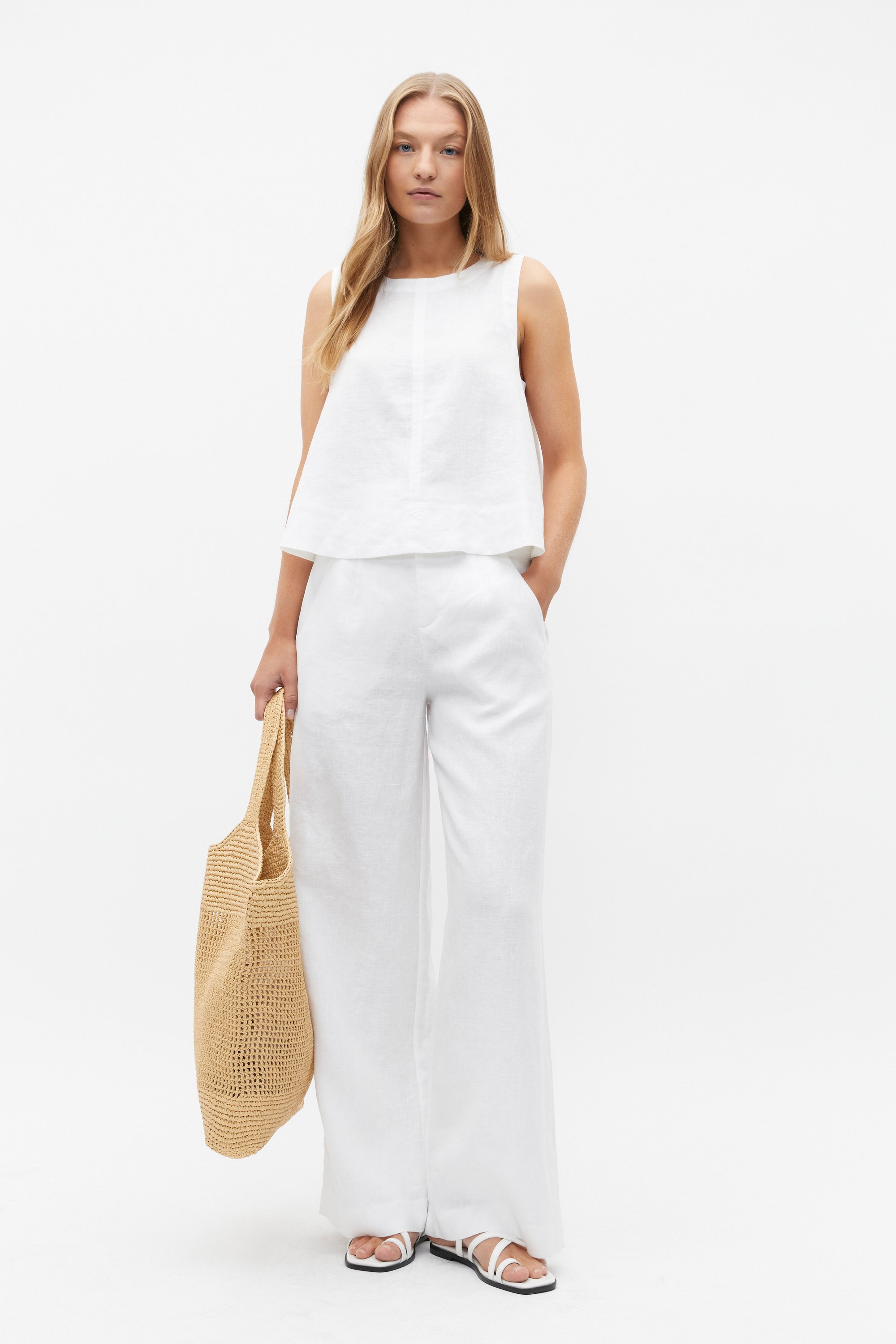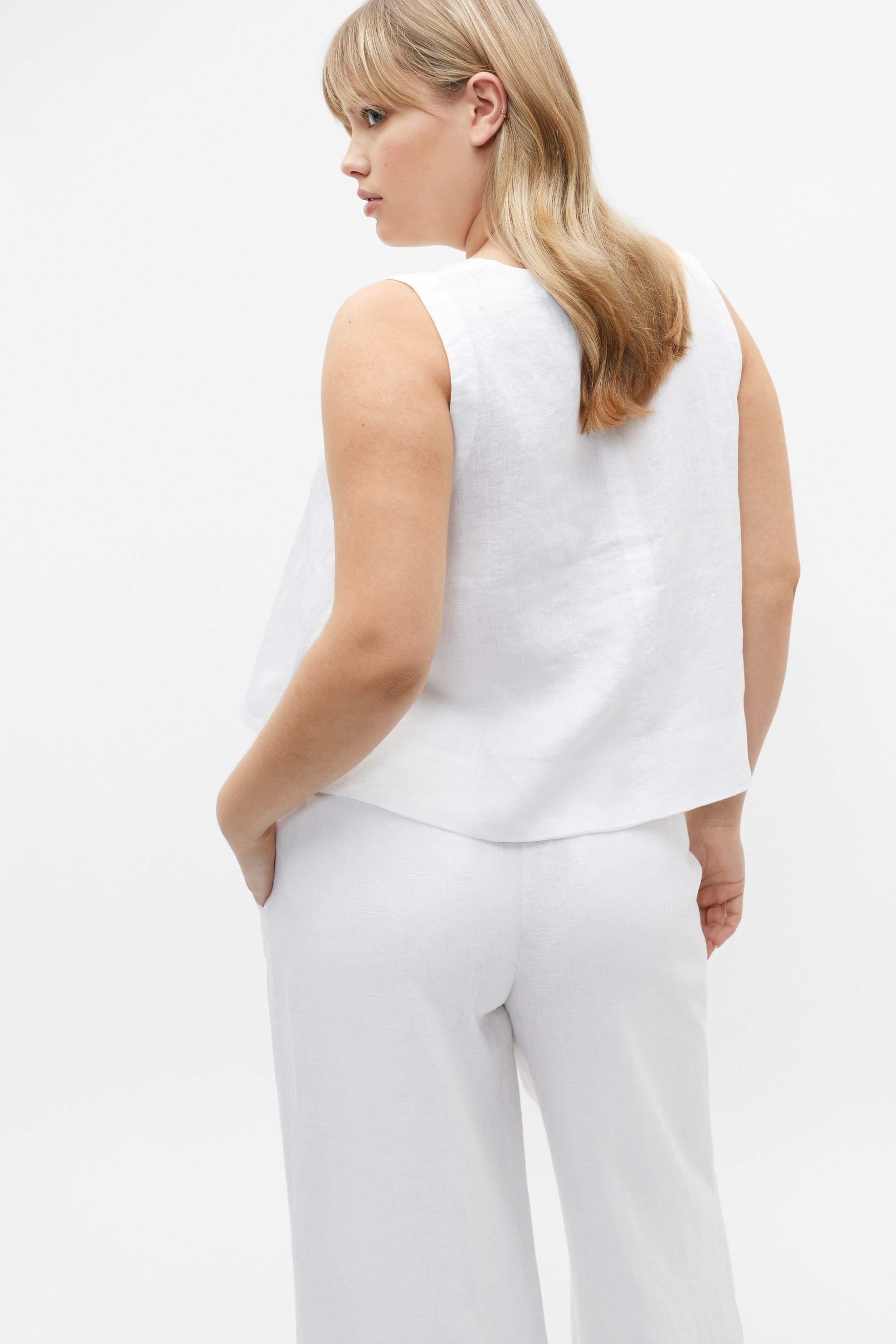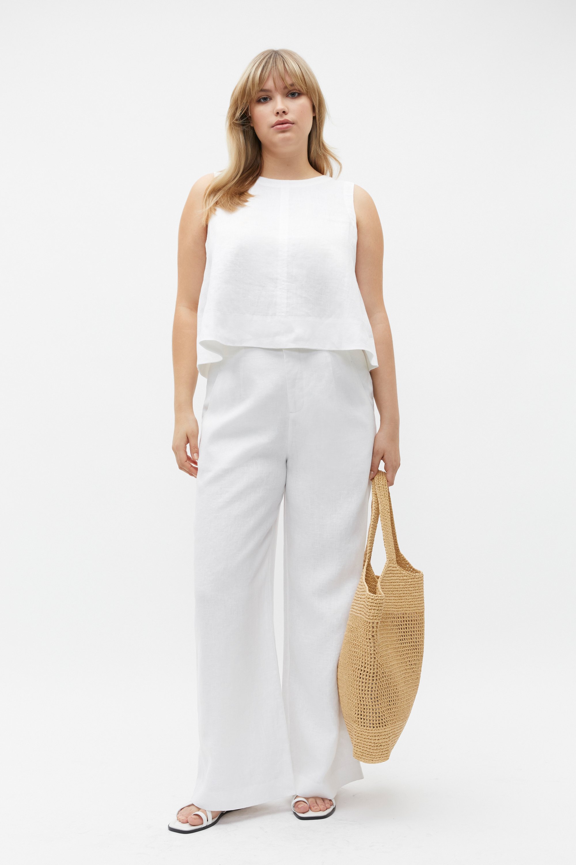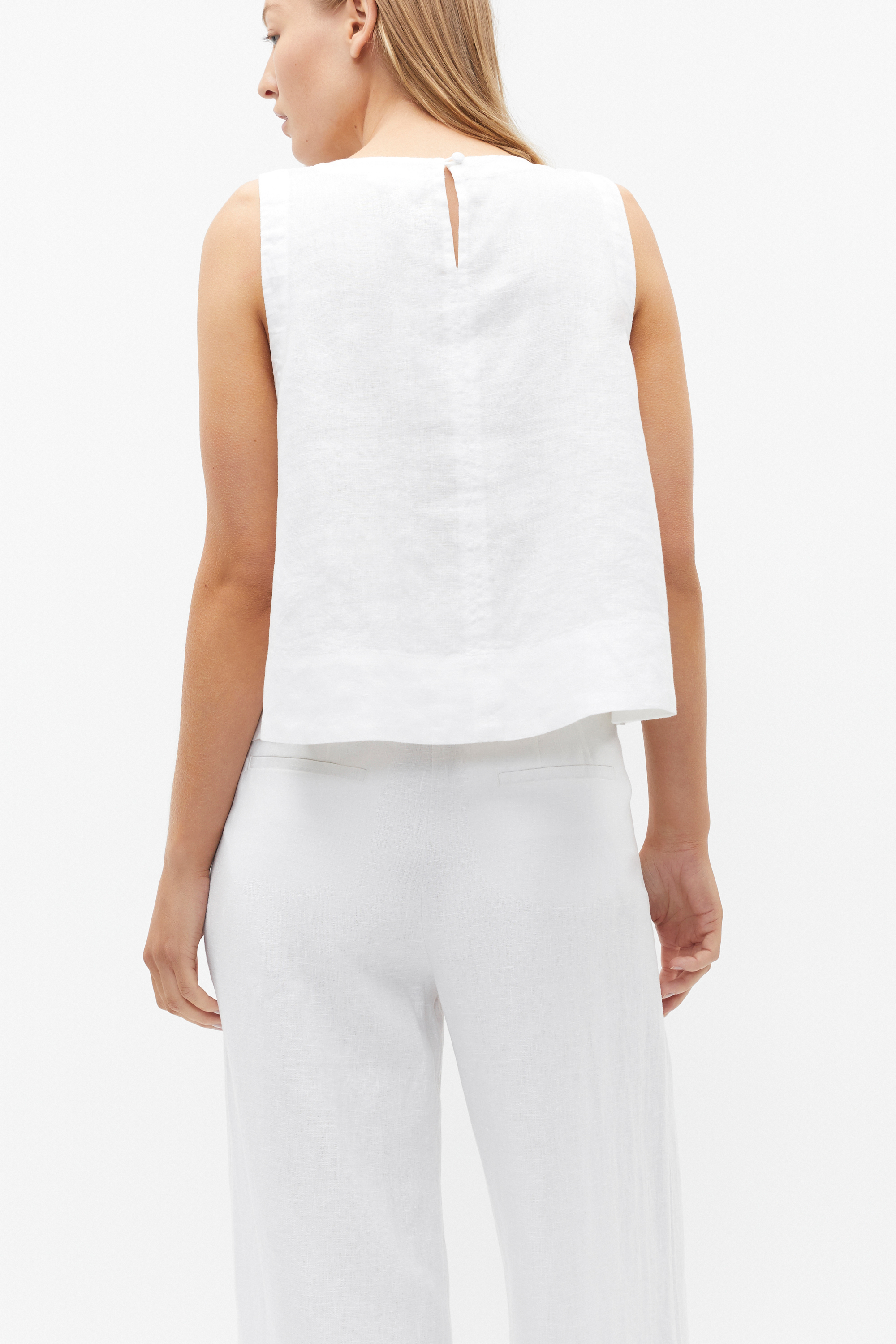 This shell top offers a new shape for your wardrobe, with an easy swing cut and a cropped length. It is crafted from premium linen made with French flax, and is ideal for styling with high-waisted skirts and trousers.