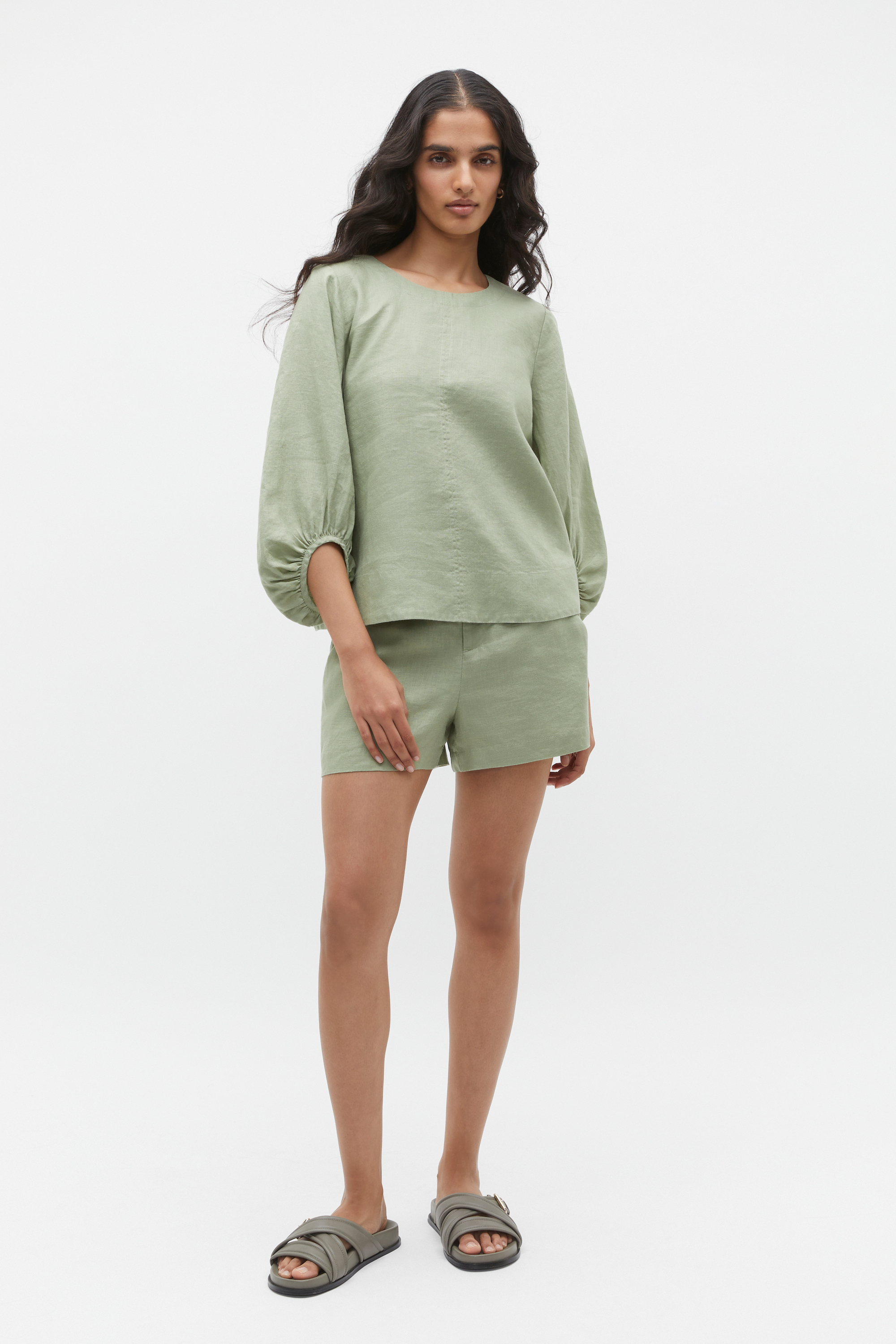 Core Linen Waisted Short  Pale Olive  hi-res Core Linen Waisted Short  Pale Olive  hi-res Core Linen Waisted Short  Pale Olive  hi-res Core Linen Waisted Short  Pale Olive  hi-res