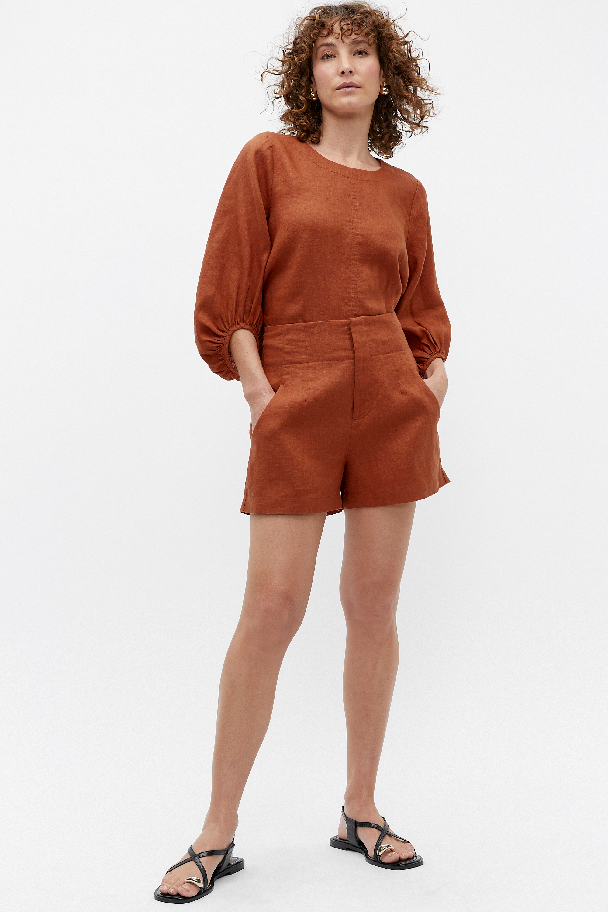 A versatile option for those warmer days, these shorts feature a fixed waistband, a secure closure with a hook and bar, internal button and fly, and front and back pockets. They fall in an A-line shape, and are crafted from breathable linen made with French flax.