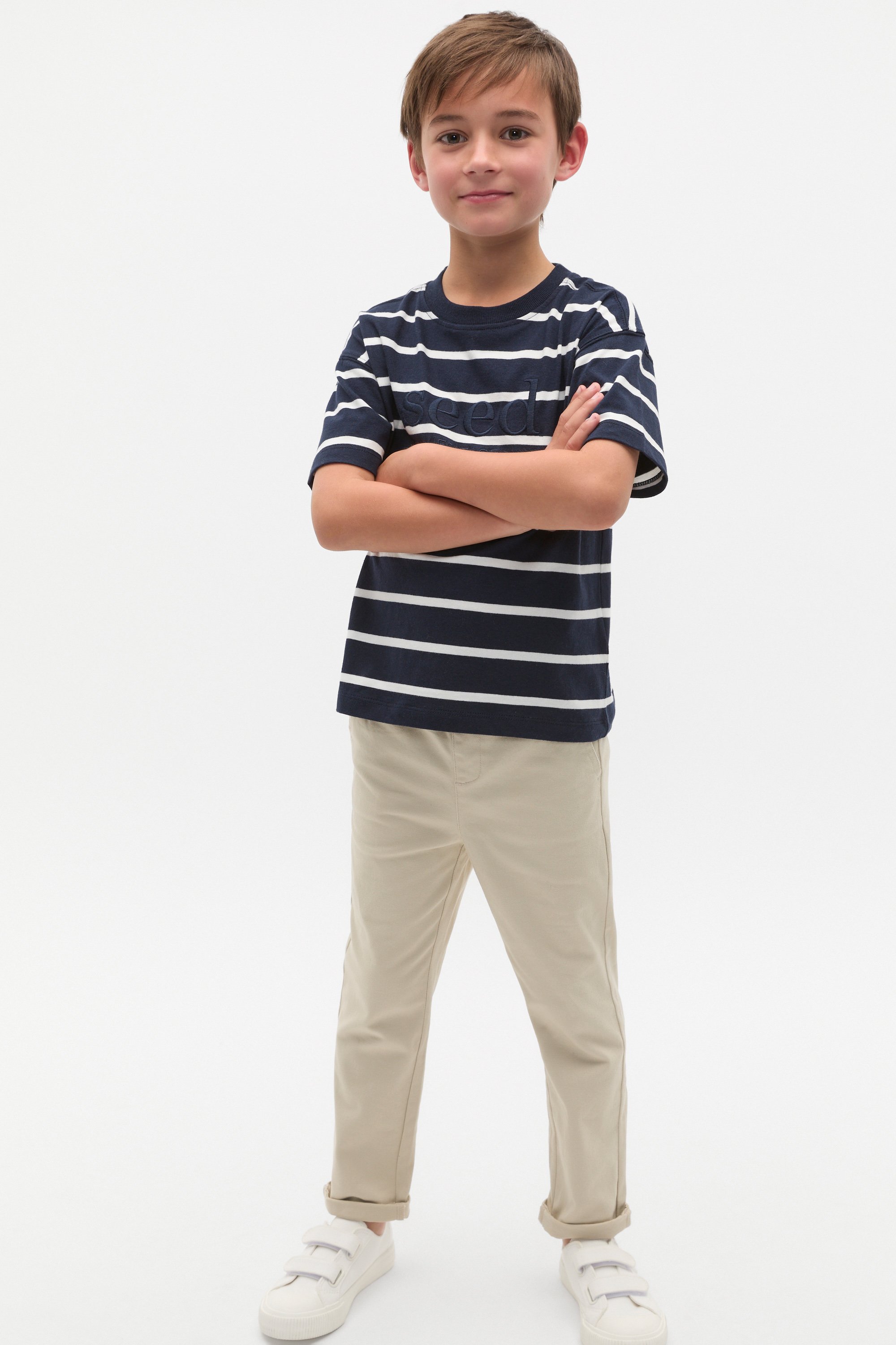 Smarten up his look with these chino pants, crafted in premium cotton. They feature an elasticated waistband with a drawstring, pockets and a straight leg design. Available in two different colours for versatile styling.