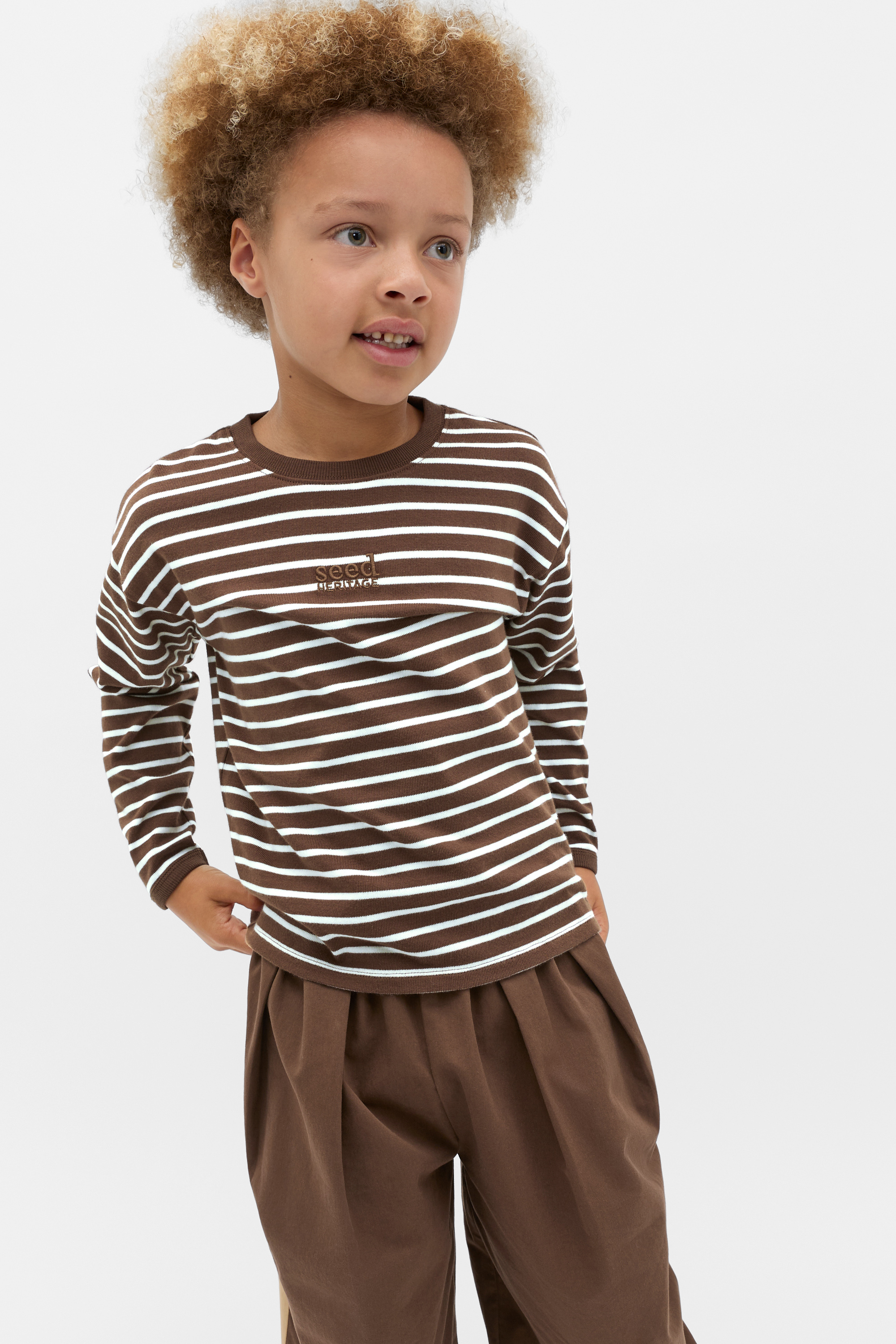 A classic style for days at play or weekends out and about, this tee features a crew neck, long sleeves, a timeless stripe design and an embroidered Seed Heritage logo. Crafted in premium cotton, it has a relaxed fit through the body.