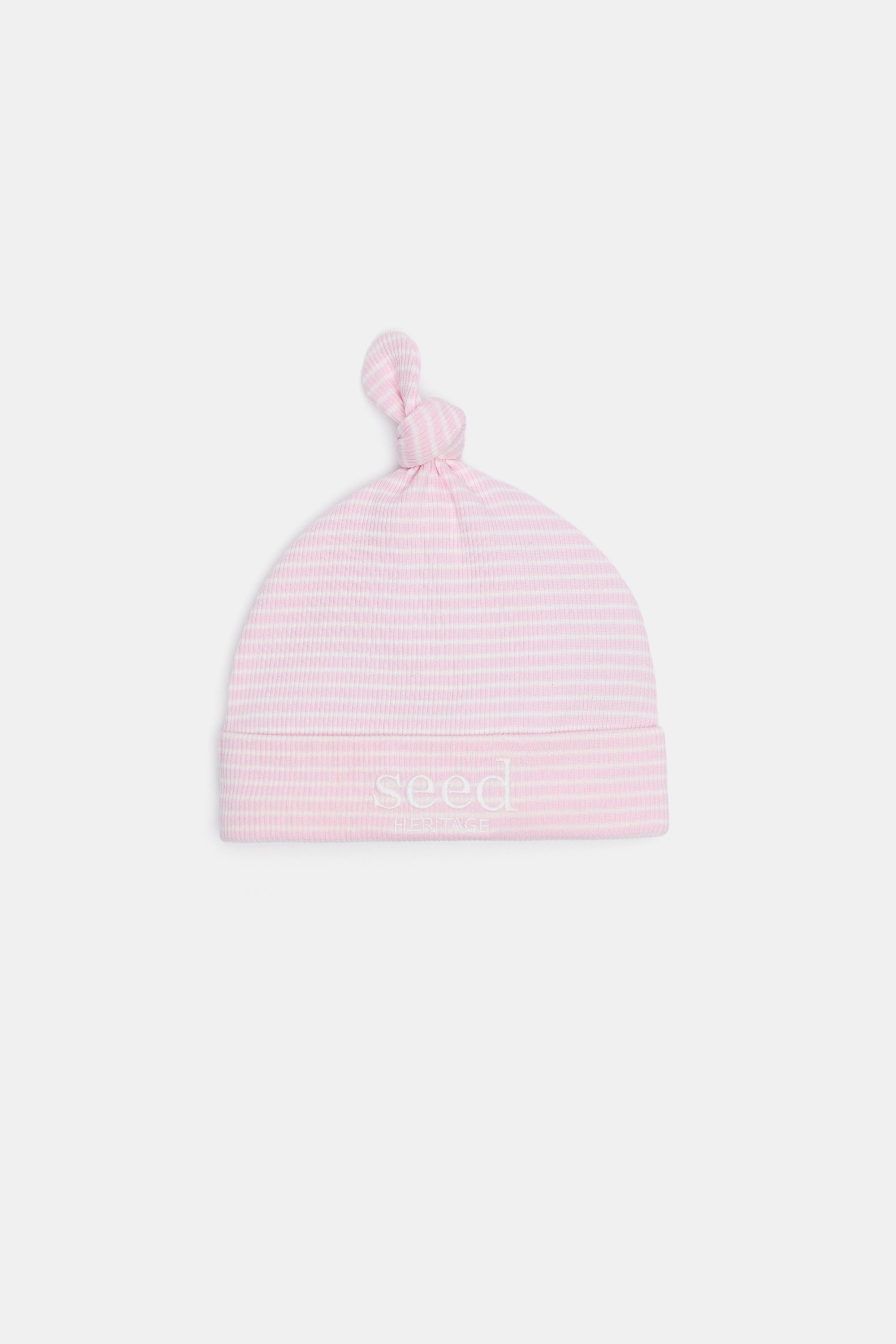 An essential for any newborn, this hat has a soft rib finish and a classic stripe design. Coming in a range of different colours, it's crafted in premium cotton and can be paired with the matching bib, leggings, onesies or logo wrap for the perfect newborn gift.