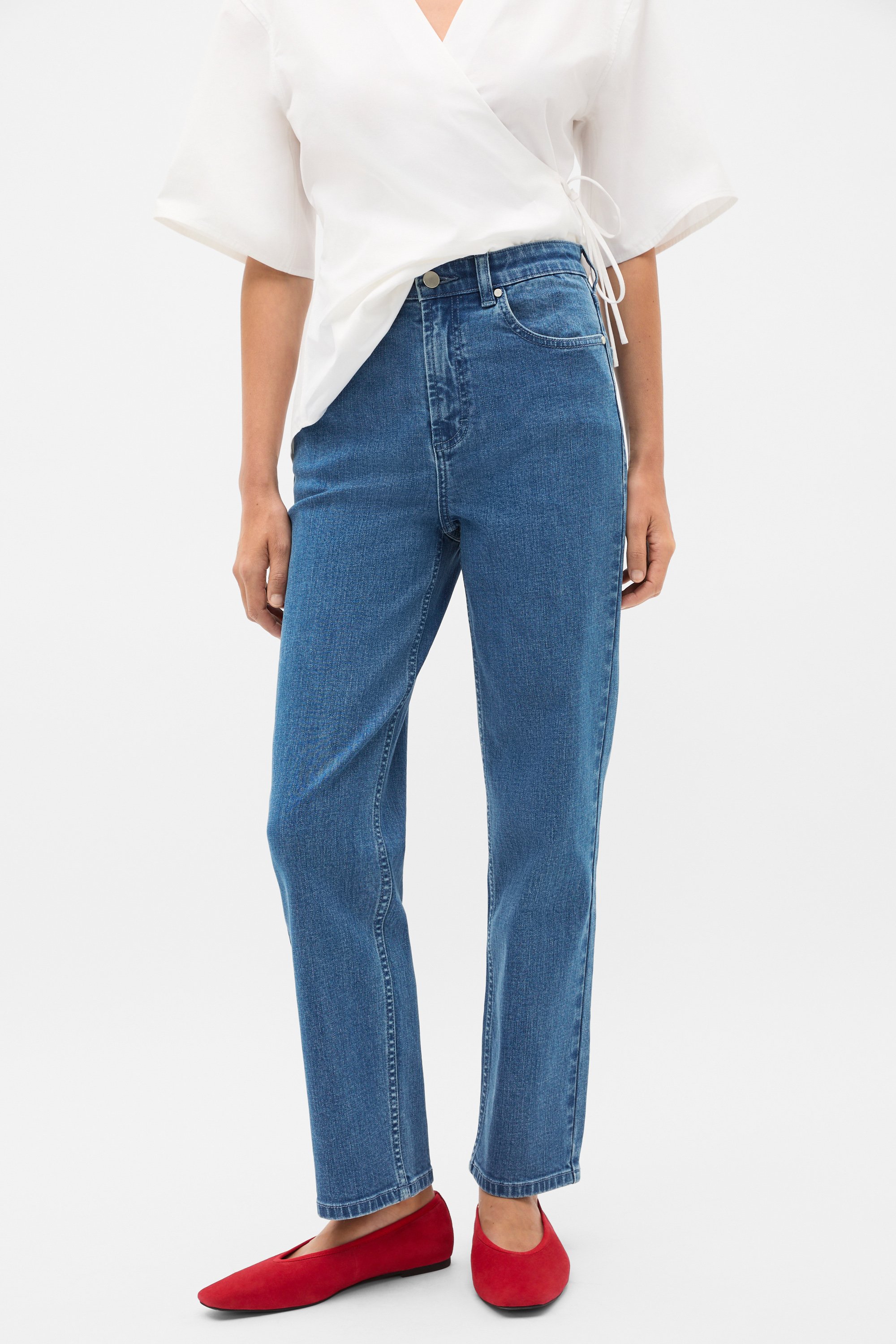 These jeans are an effortless option for your everyday styling, ready to slot right into your wardrobe. Crafted in premium cotton, they feature a fixed waistband with a zip front and front pockets. With a slight stretch, these jeans have a straight leg shape. By choosing our cotton products you're supporting our investment in Better Cotton's mission. This product was sourced via a system of mass balance and therefore may not contain Better Cotton.