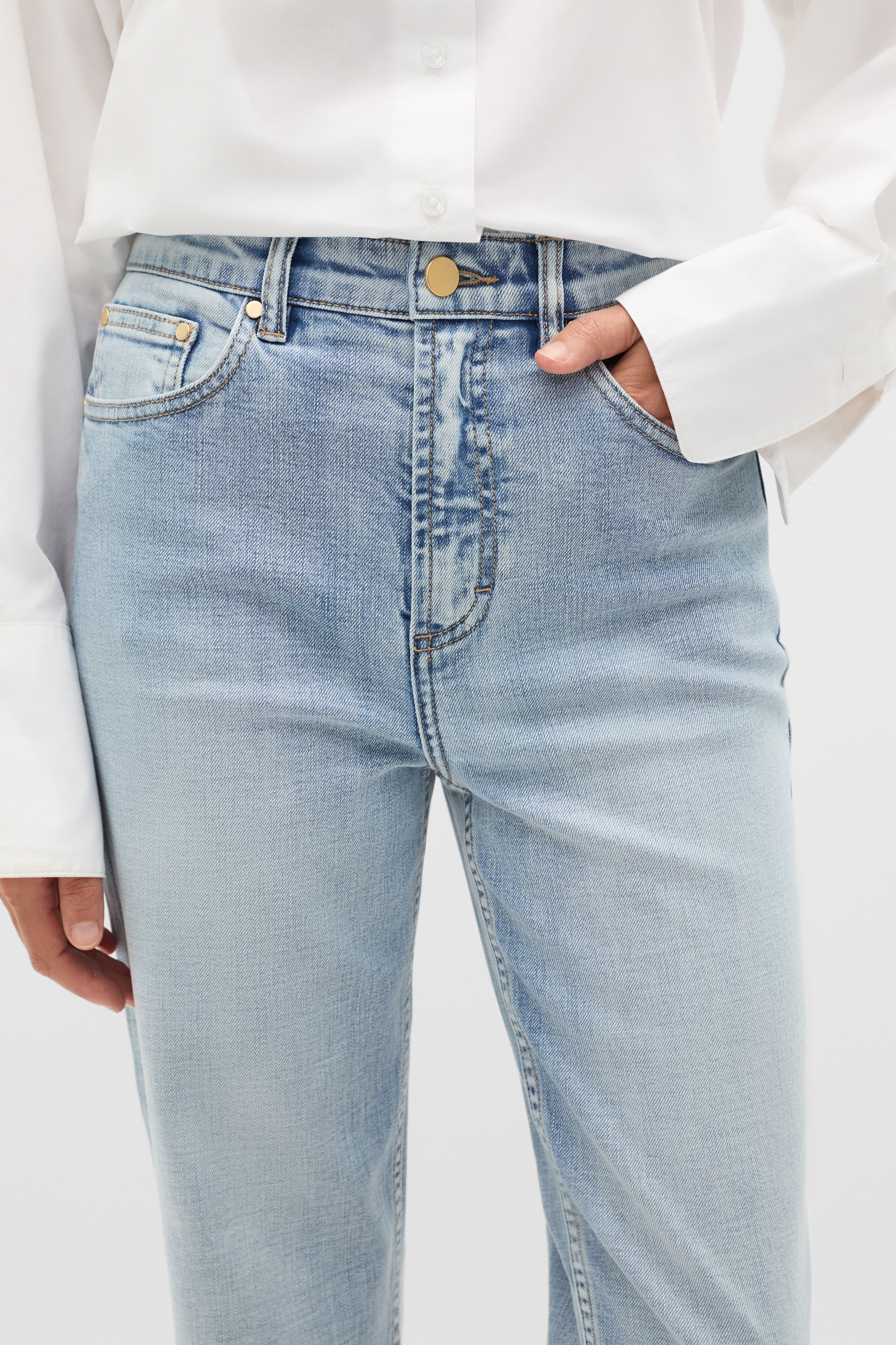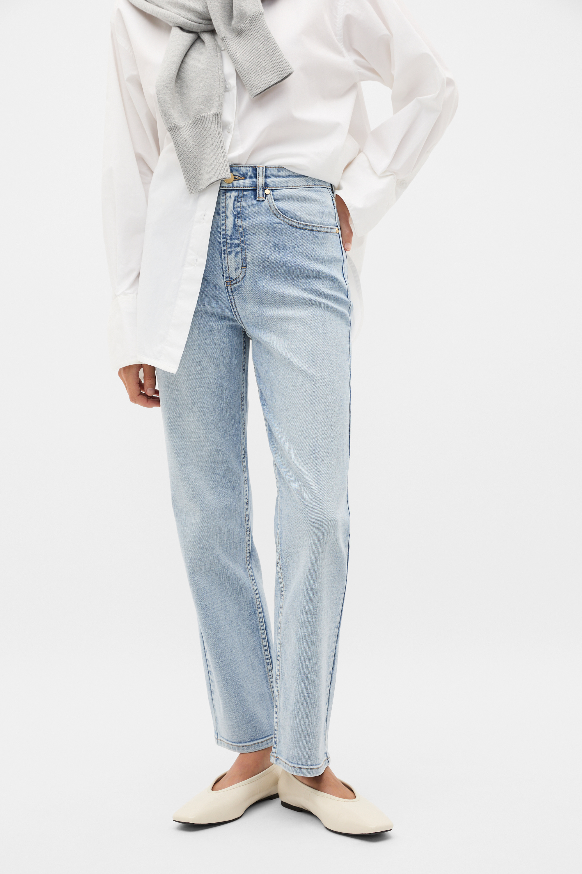 These jeans are an effortless option for your everyday styling, ready to slot right into your wardrobe. Crafted in premium cotton, they feature a fixed waistband with a zip front and front pockets. With a slight stretch, these jeans have a straight leg shape. By choosing our cotton products you're supporting our investment in Better Cotton's mission. This product was sourced via a system of mass balance and therefore may not contain Better Cotton.